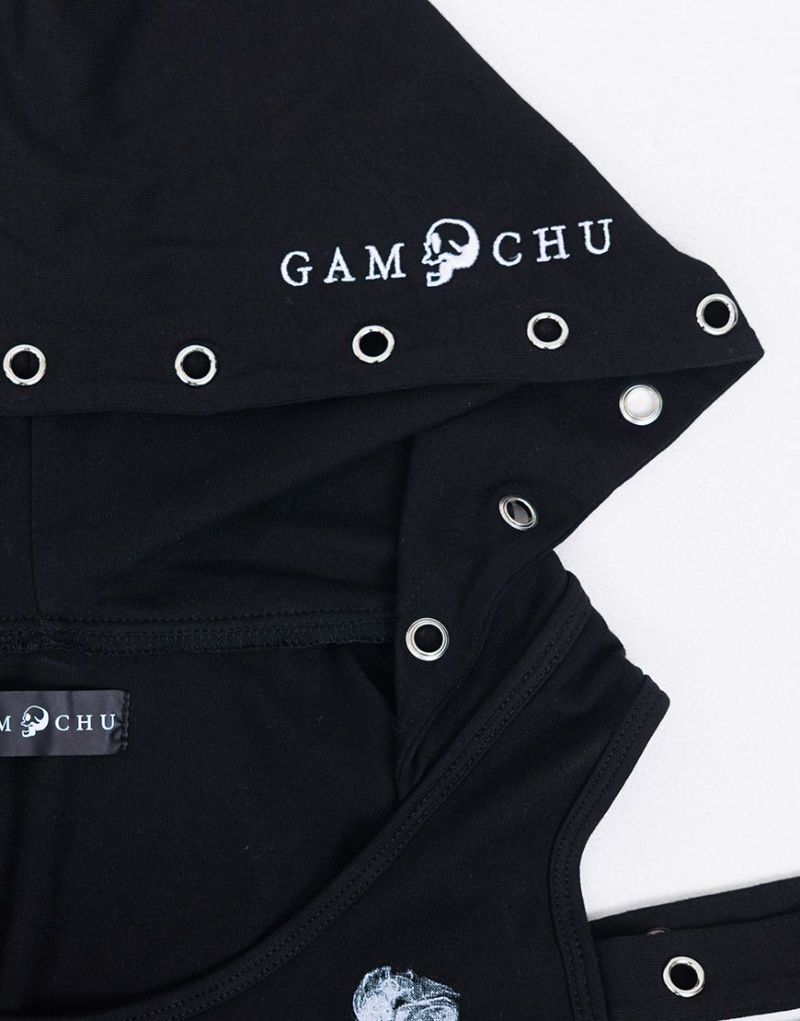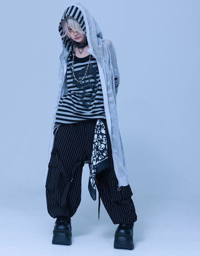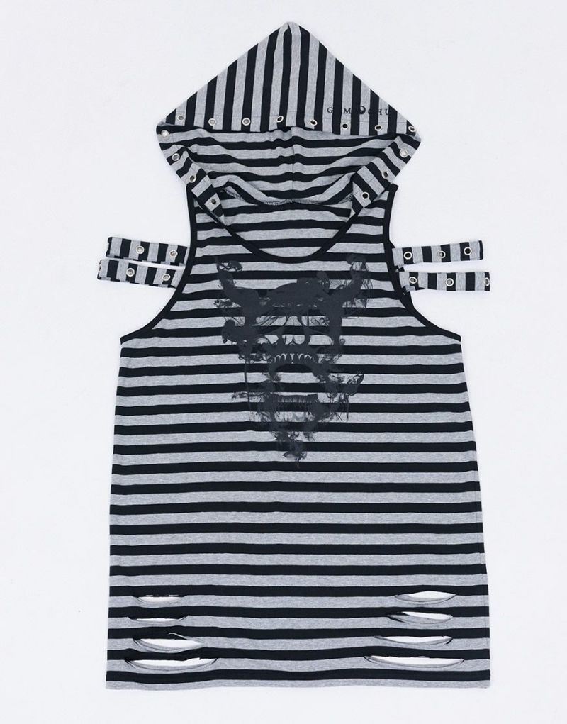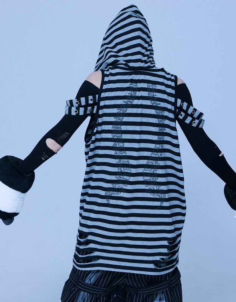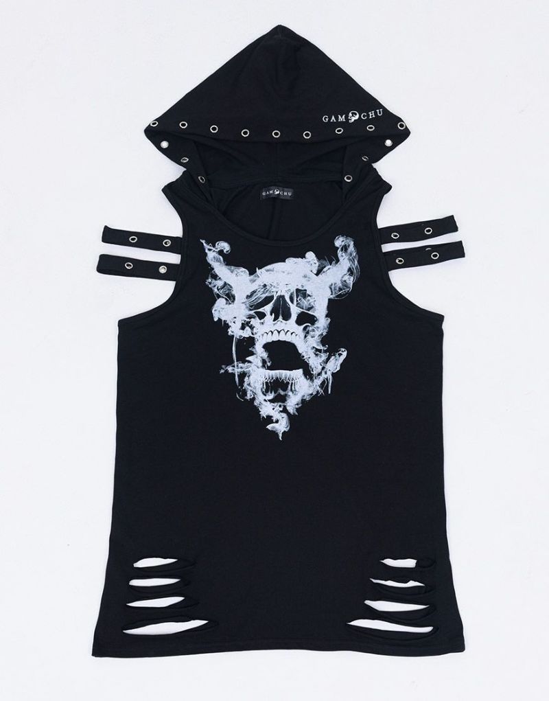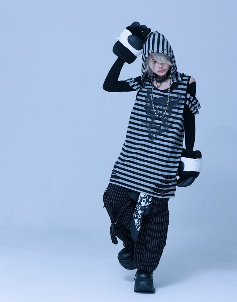 Gamchuが放つ、《ボクはずっと日陰にいたいなフード付きスカルタンクトップ》は、定番という概念を裏切る“破壊された美”を宿す一枚。