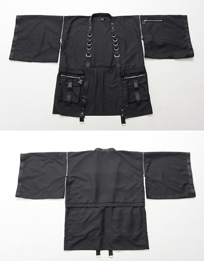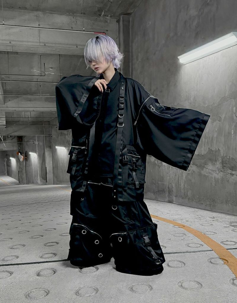 存在感抜群の着物袖と、タクティカルな装飾が絶妙に融合したデザインが特徴です。