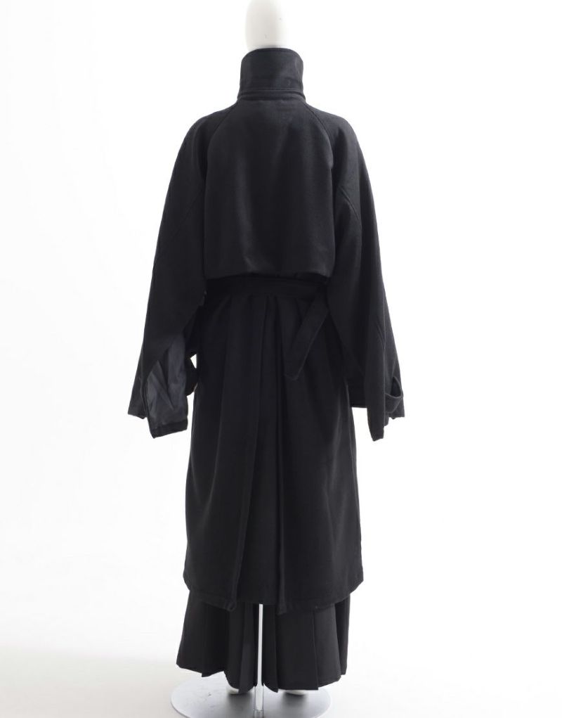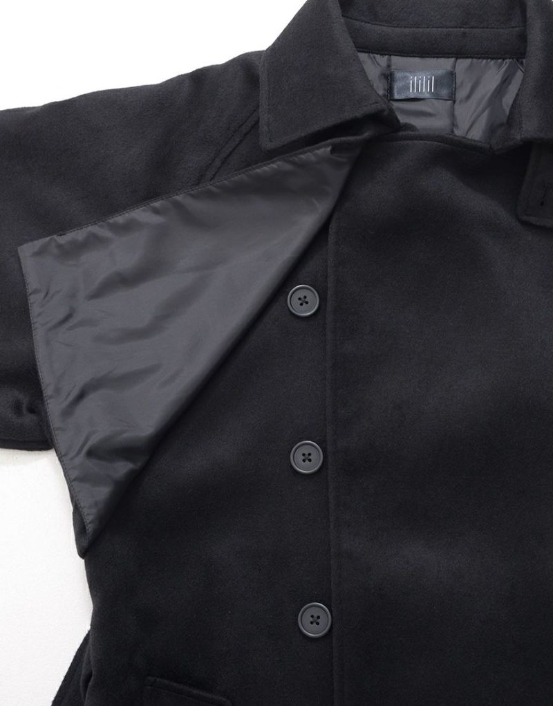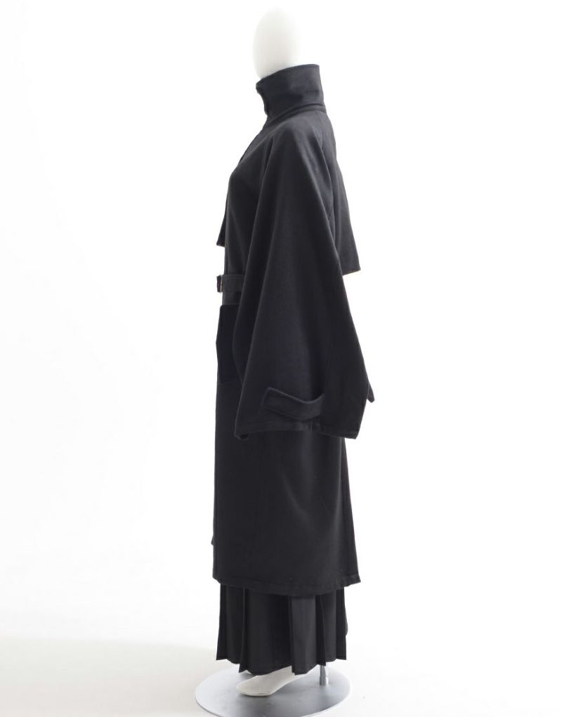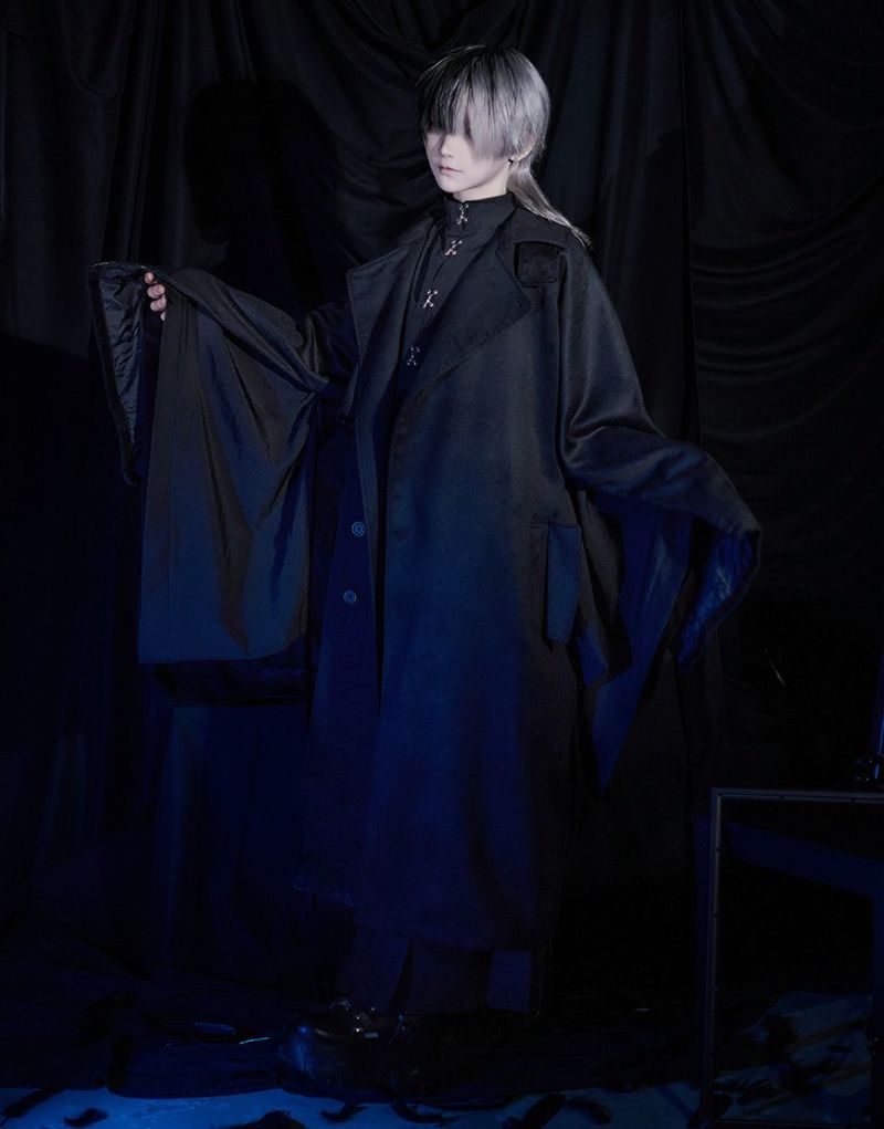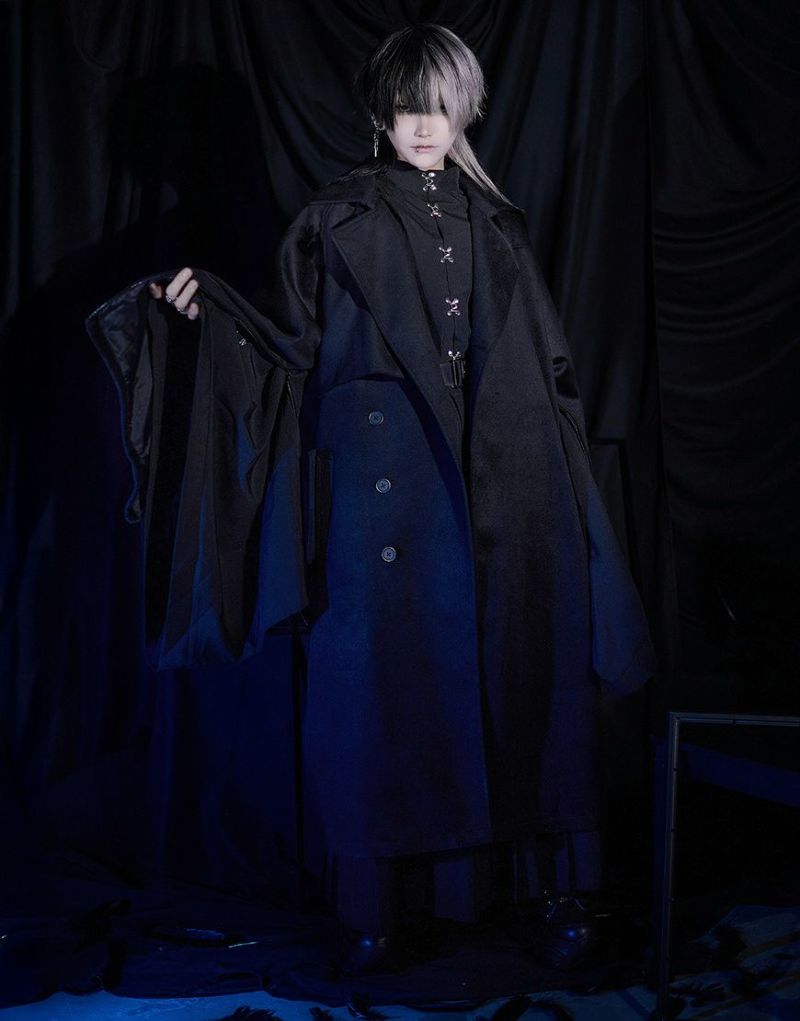 ililil【イルイルイル】より【燈影夢界】ロングコートが登場です。 フェイクメルトン生地を使用したインパクト抜群のロングコートです。 メルトン素材は、ウールに似た風合いと柔らかさを持ちながらも、軽量で扱いやすく、暖かさも抜群。 袖にはファスナーが付いており、開閉することでマント風にもアレンジ可能。 幅広いシルエットのアイテムにも対応でき、重ね着やレイヤードコーディネートを楽しむことができます。 キレイめかつモードな雰囲気で、レディース、メンズ問わず着用可能です。