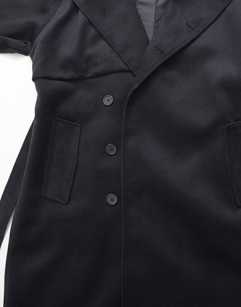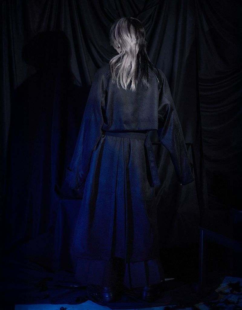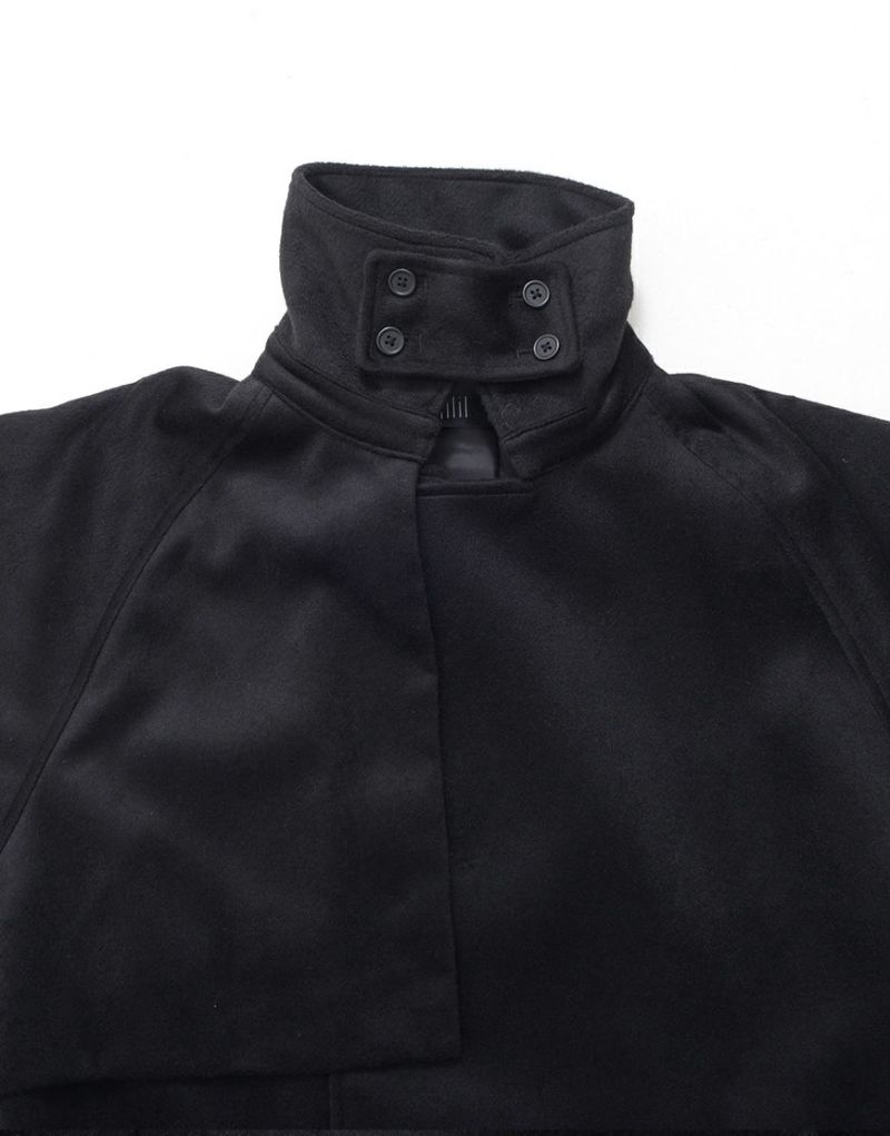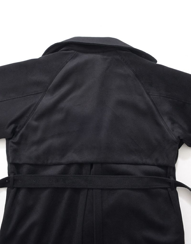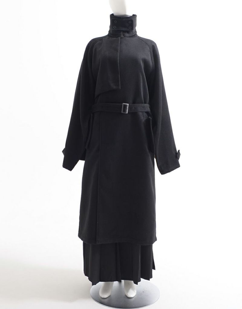 ililil【イルイルイル】より【燈影夢界】ロングコートが登場です。 フェイクメルトン生地を使用したインパクト抜群のロングコートです。 メルトン素材は、ウールに似た風合いと柔らかさを持ちながらも、軽量で扱いやすく、暖かさも抜群。 袖にはファスナーが付いており、開閉することでマント風にもアレンジ可能。 幅広いシルエットのアイテムにも対応でき、重ね着やレイヤードコーディネートを楽しむことができます。 キレイめかつモードな雰囲気で、レディース、メンズ問わず着用可能です。