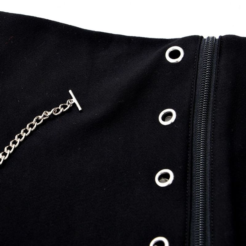 繊細なタッチのプリントはインパクト抜群。更にフロントネックのリングと袖のアイレットをチェーンで繋げた装飾と拘りのディテールとなっています。