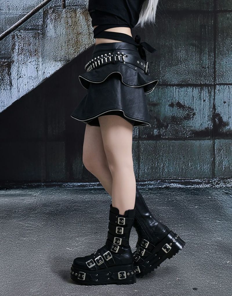 フリルと裾にはジップデザインを施し、細部までこだわりのデザインに。