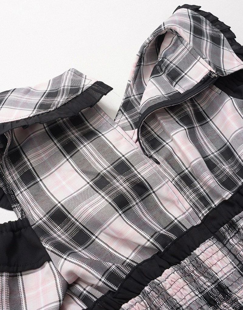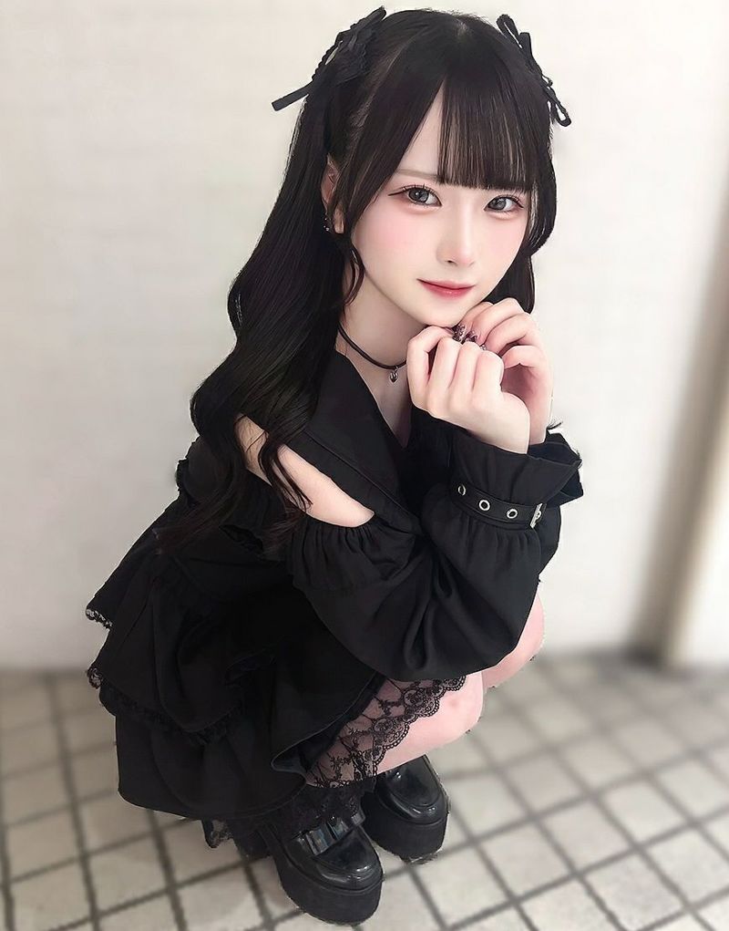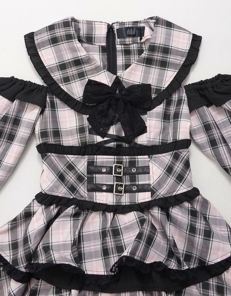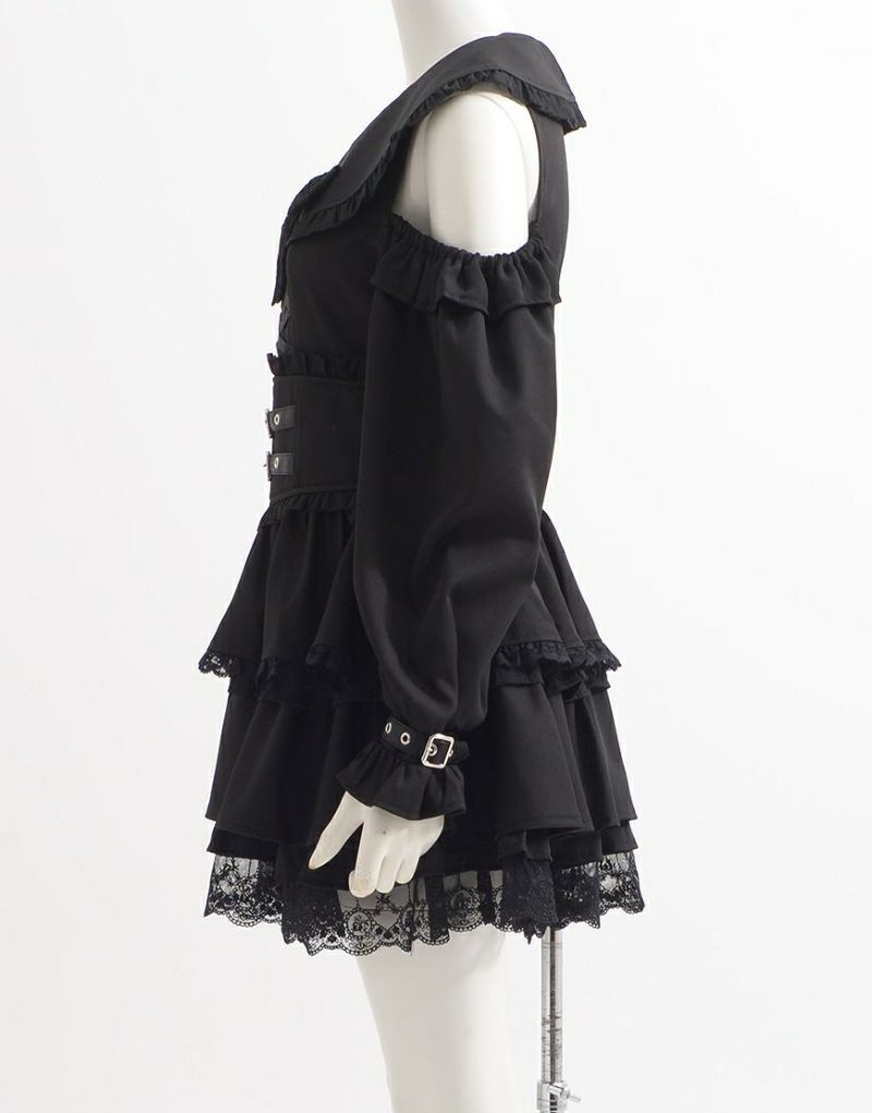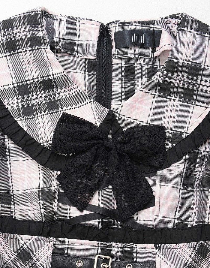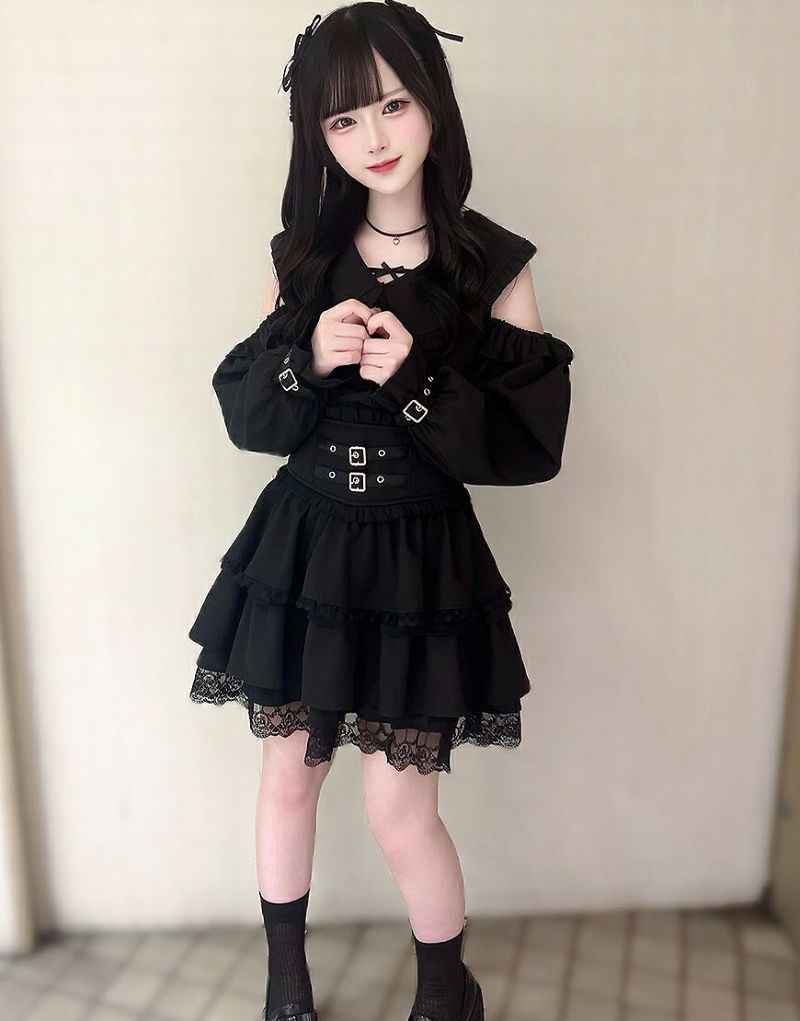 広めに開いた大きめ丸襟に、取り外し可能なレースリボンを添えた、地雷系最強ワンピース。