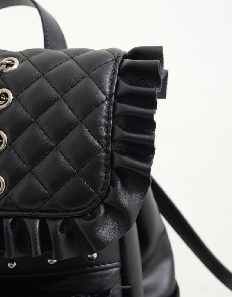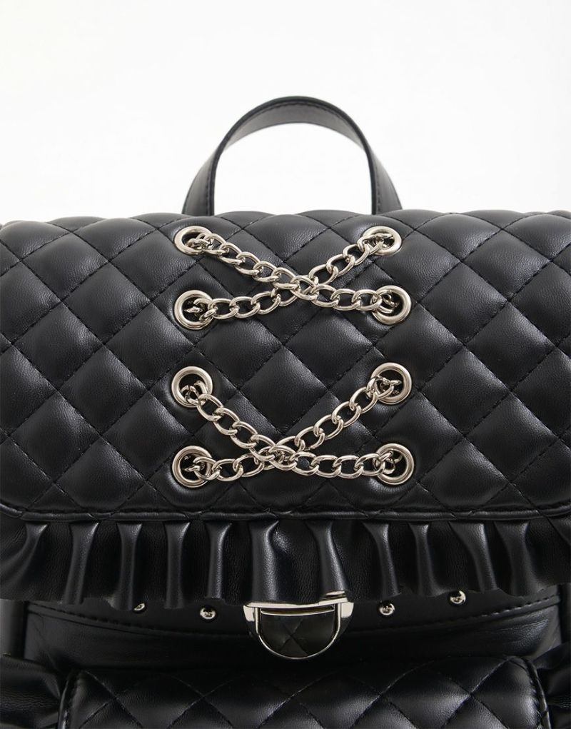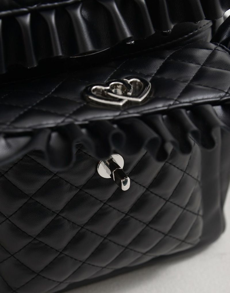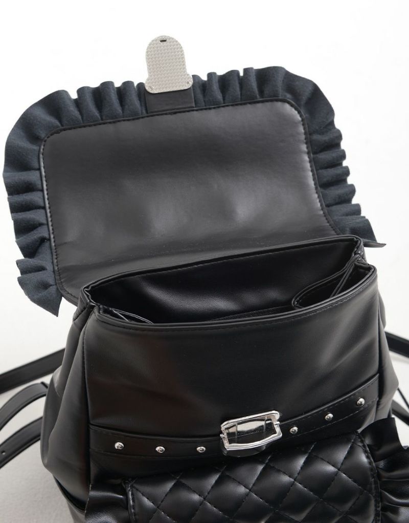 ilililより、地雷ちゃんのまっくろふりるの罪リュックが登場です。 ふりふり、でも毒っぽく。 地雷ちゃんの「かわいい」と「罪」を背負って出かける、真っ黒なごほうび。 広がるフリルとキルティングが印象的なリュック。 フタ部分にはクロスチェーンを、前ポケットにはハートのツイストロックを配し、ディテールの一つひとつに“地雷かわいい”を詰めこみました。 デイリー使いはもちろん、ライブ遠征や推し活にもぴったり◎ 大人でも持ちやすい上品なブラックカラーで、甘すぎないバランス感も魅力です。