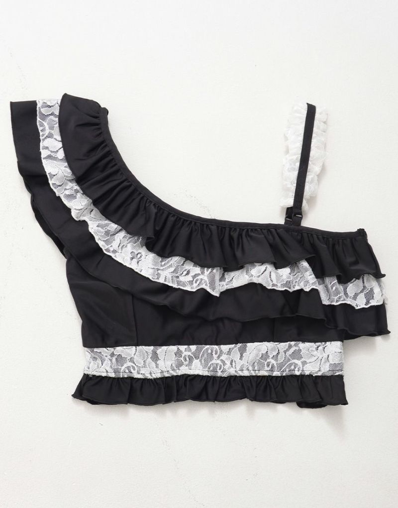 甘さと毒っ気を絶妙にミックスした、地雷系・量産型女子に刺さるフリルビキニセット。