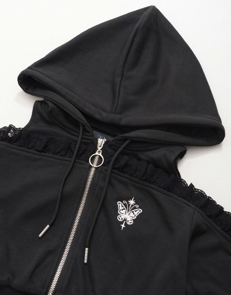 パーカー:肩あき×フリル 胸元ワンポイント刺繍♪ ショート丈で脚長効果◎