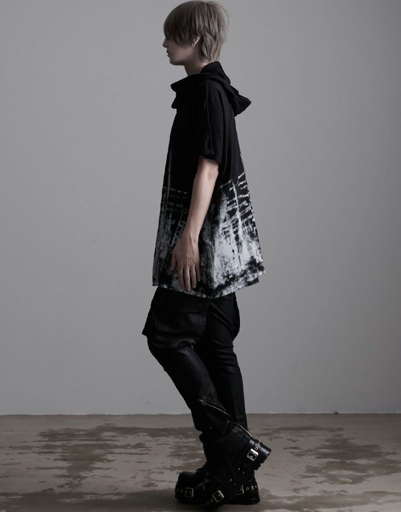 落ち感のある柔らかな綿レーヨン生地を使用したフード付きドルマンビッグTシャツです。