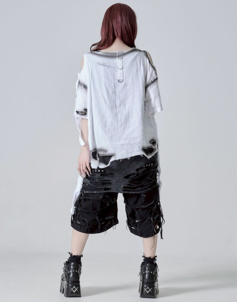 グラフィックはプリント仕様、ボディ部分には部分ダメージ加工&スプレー加工でグランジな雰囲気を引き立てます。