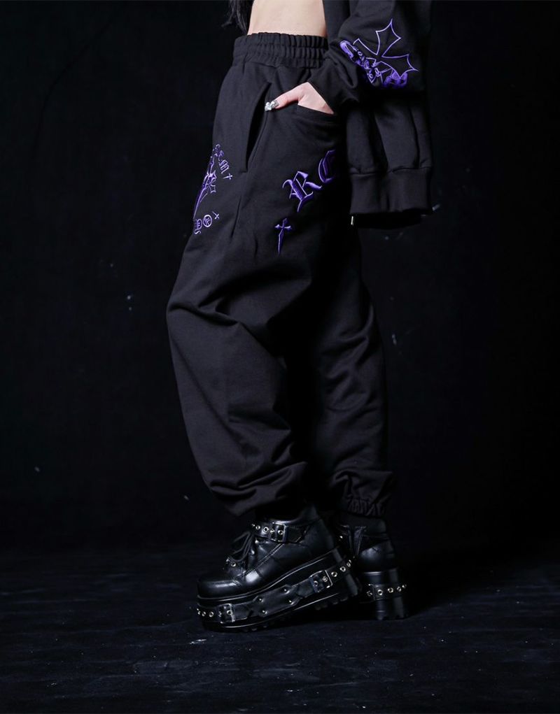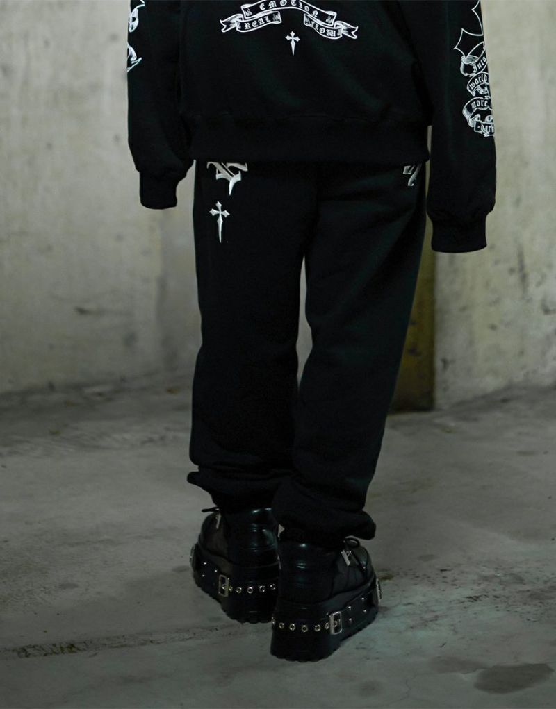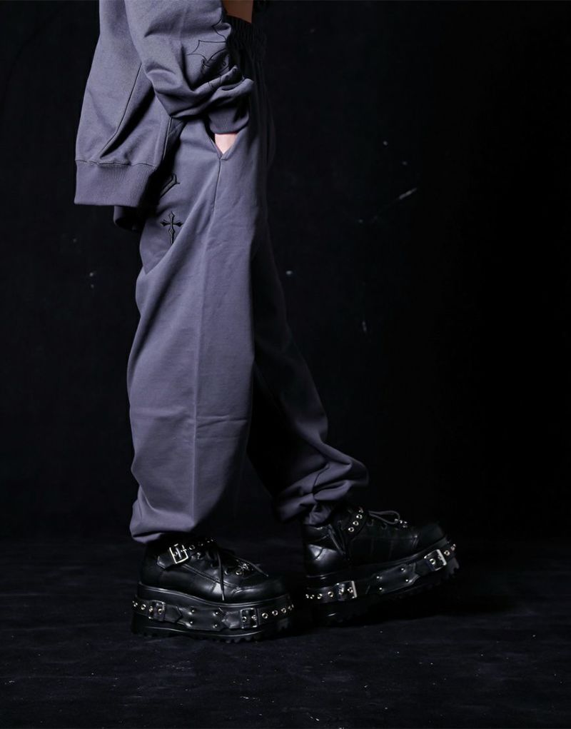 ゴシックテイストのアートワークを刺繍で表現したスウェットパンツです。