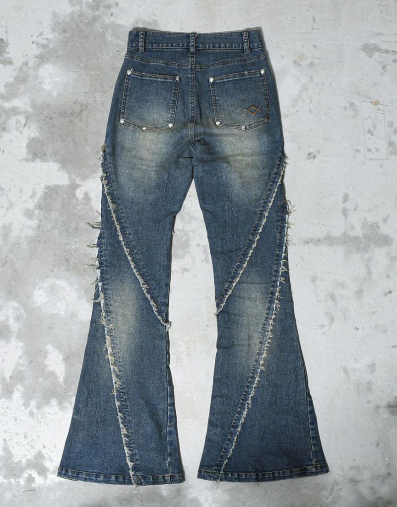 切替ラインは立体感を引き出すよう大胆に配置され、カットオフからはあえてほつれを出すことで、グランジ感のある表情をプラス。