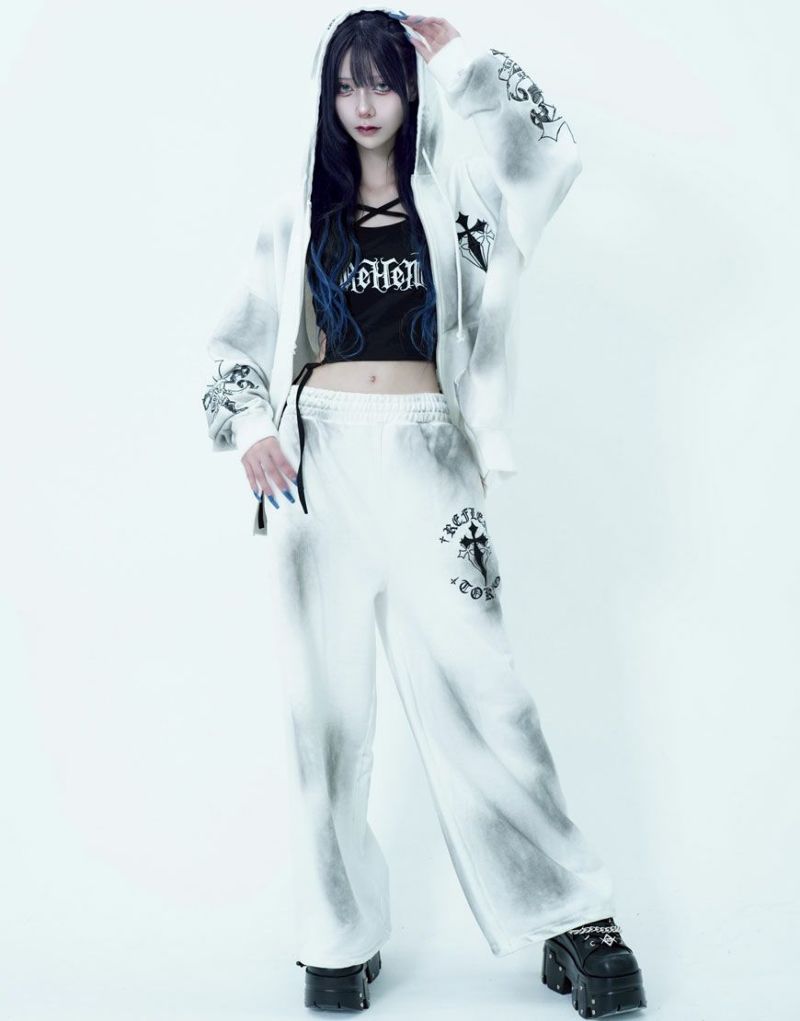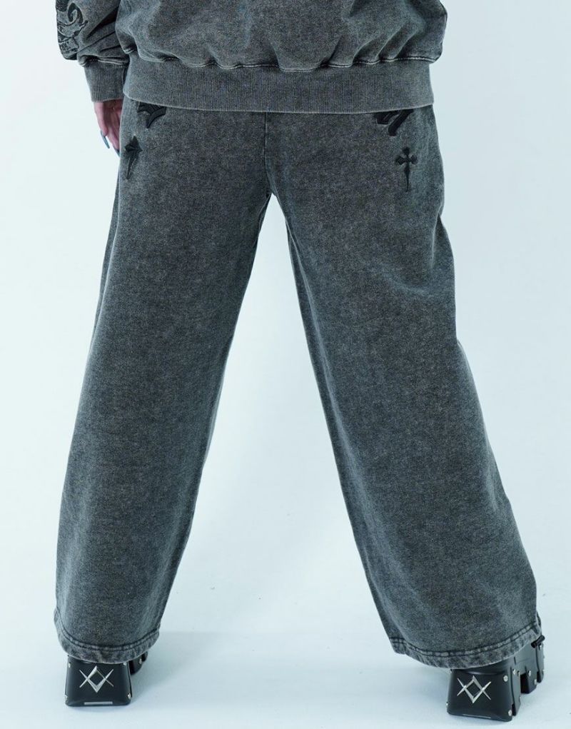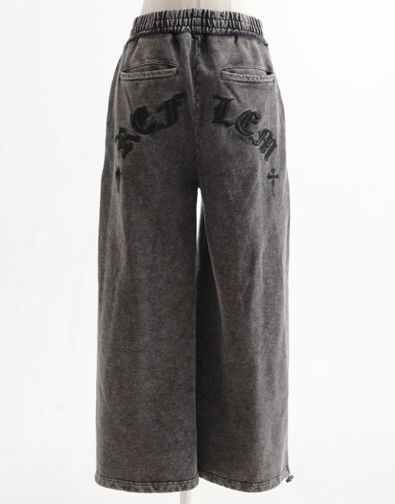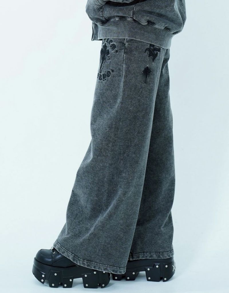 ゴシックテイストのアートワークを刺繍で表現したワイドシルエットのスウェットパンツです。