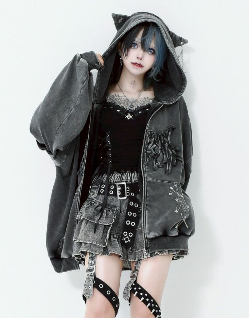 フードに猫耳がデザインされたジップパーカー。