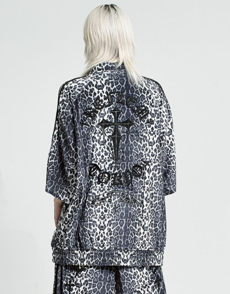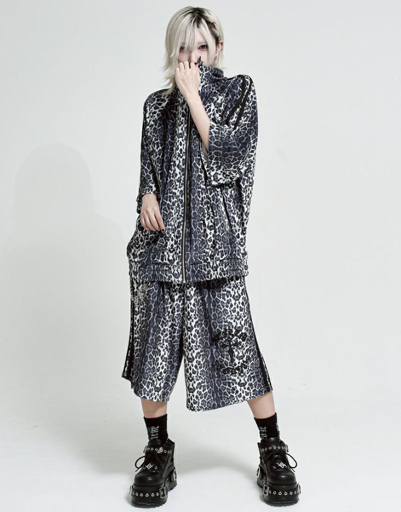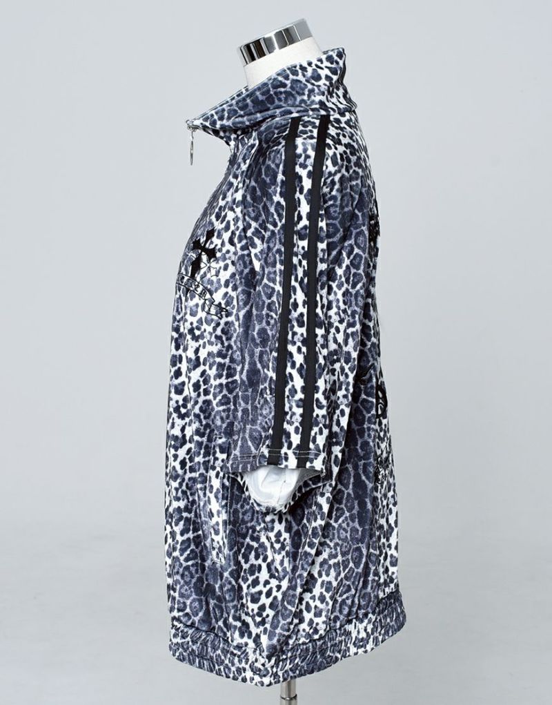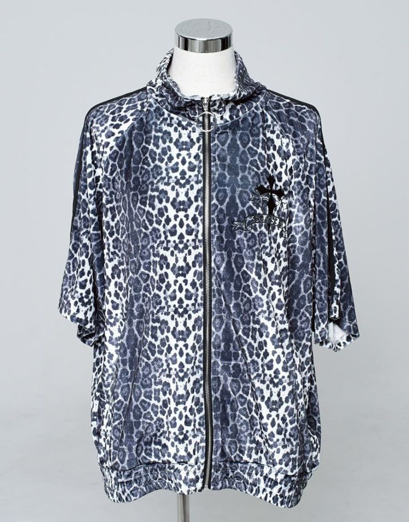 袖には定番のジャージ生地を使った2本ラインを別布で切り替え、スポーティーさとゴシックテイストを融合したデザインに仕上げました。