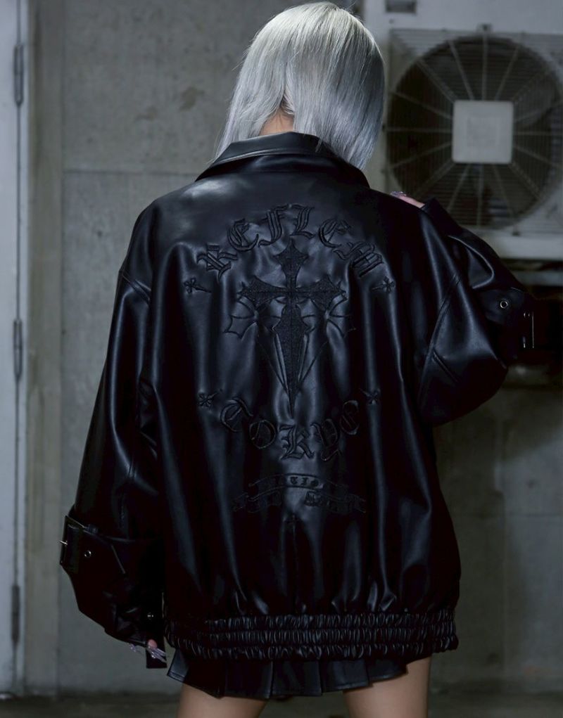 REFLEM【レフレム】クロス刺繍PUレザージャケット/全1色
