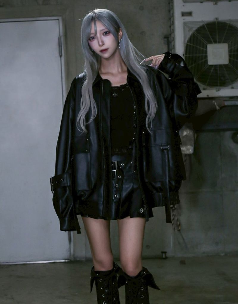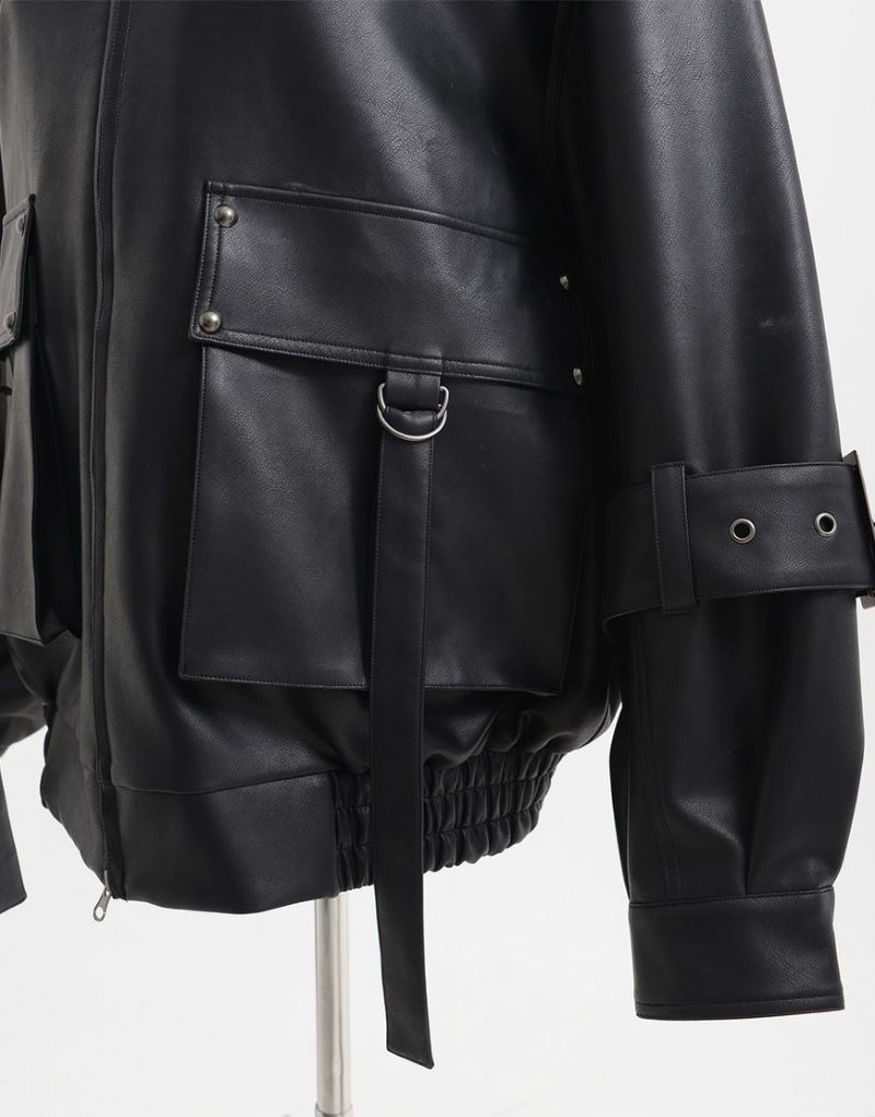 上質なフェイクレザー素材を採用し、しっとりとした質感と程よいハリ感でモードな存在感を放つ一着です。
