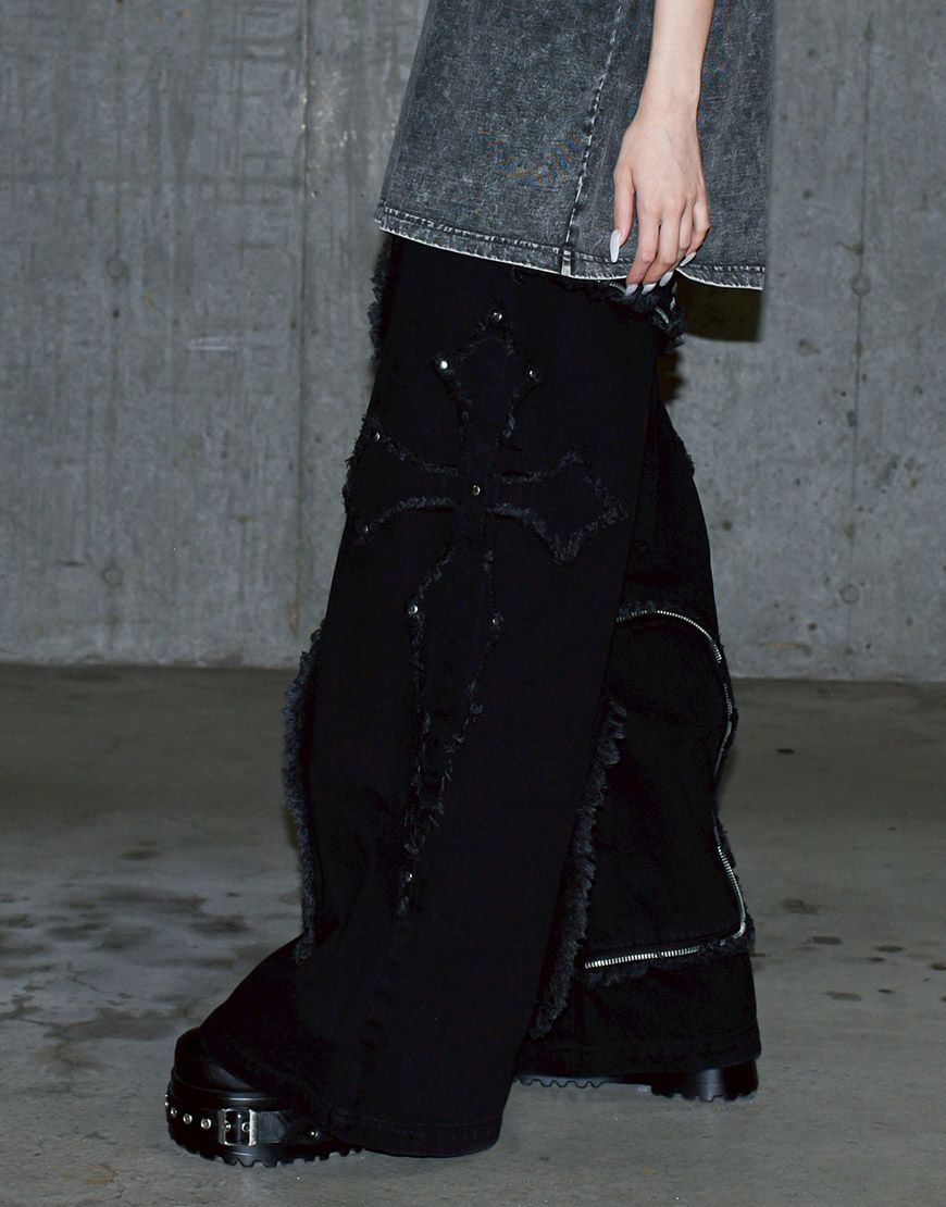 他の画像を見る ACRO SELECT【アクロセレクト】UNDER GROUND 切り替えフリンジWウエストワイドフレアデニムパンツ/全2色 SALE 定価 ¥ 17,380 のところ ¥ 9,900 税込 カートに入れる お気に入りに登録する