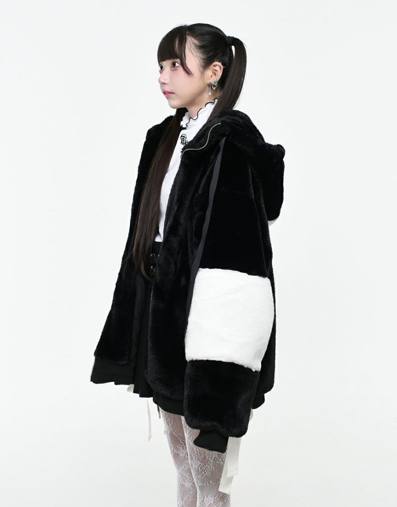 ハイネック仕様の大きめフードで真冬でも重宝するフェイクファーパーカーはもふもふの触り心地がたまらない逸品。