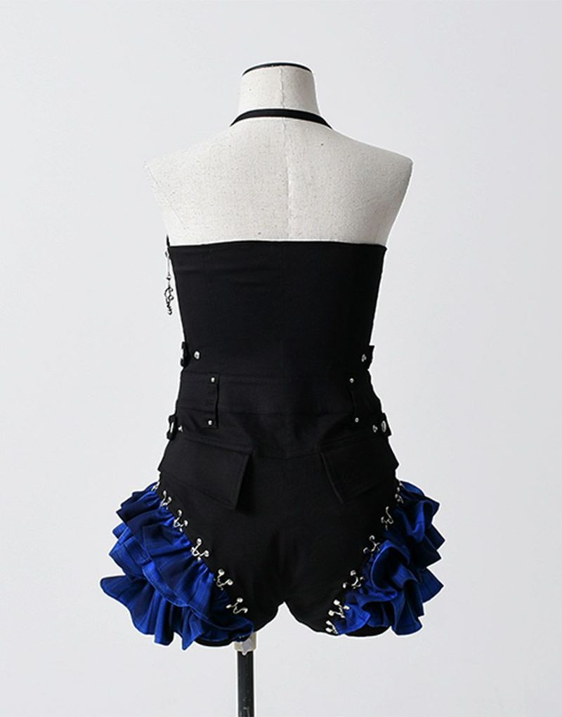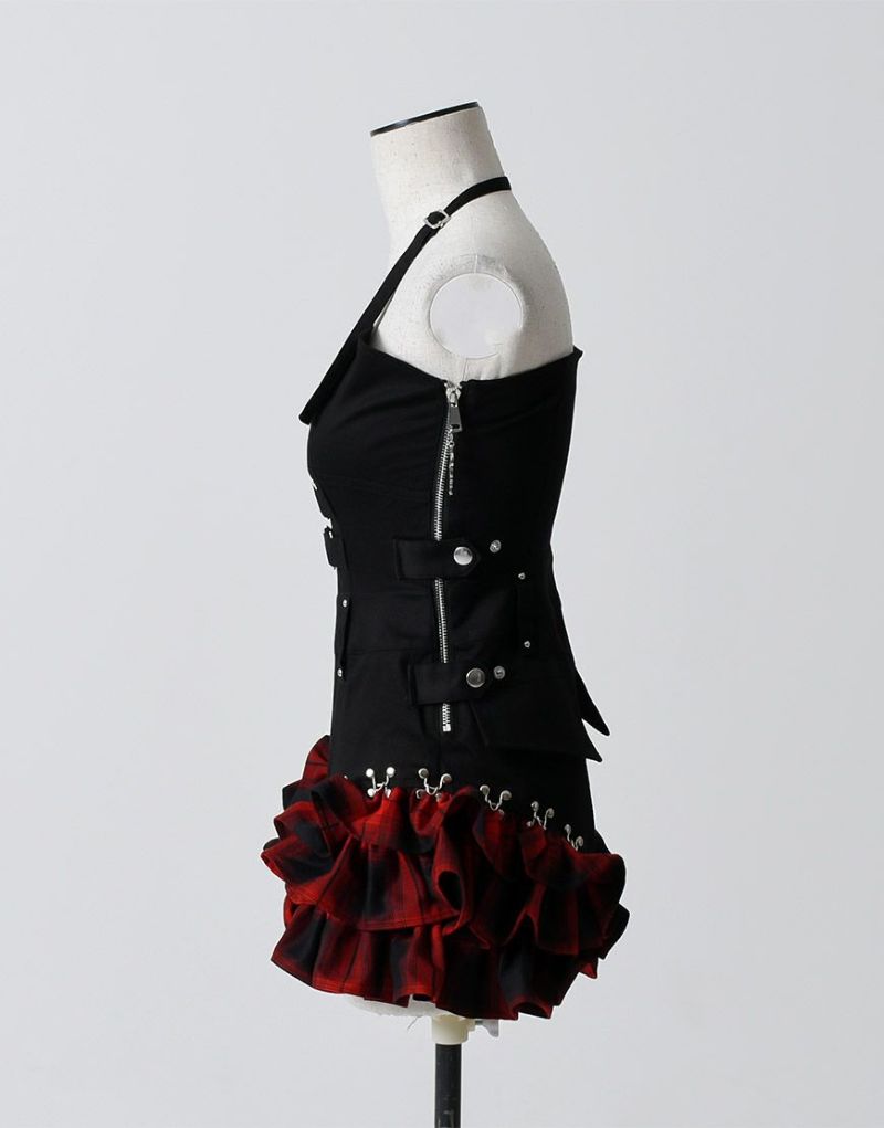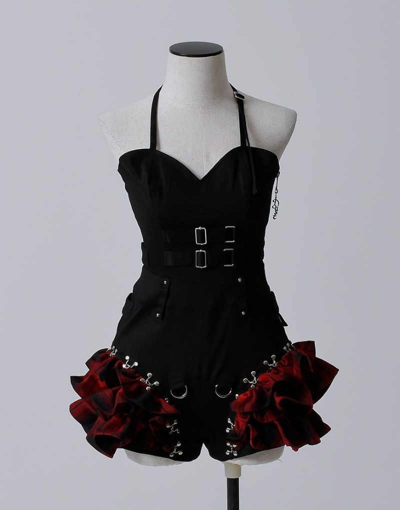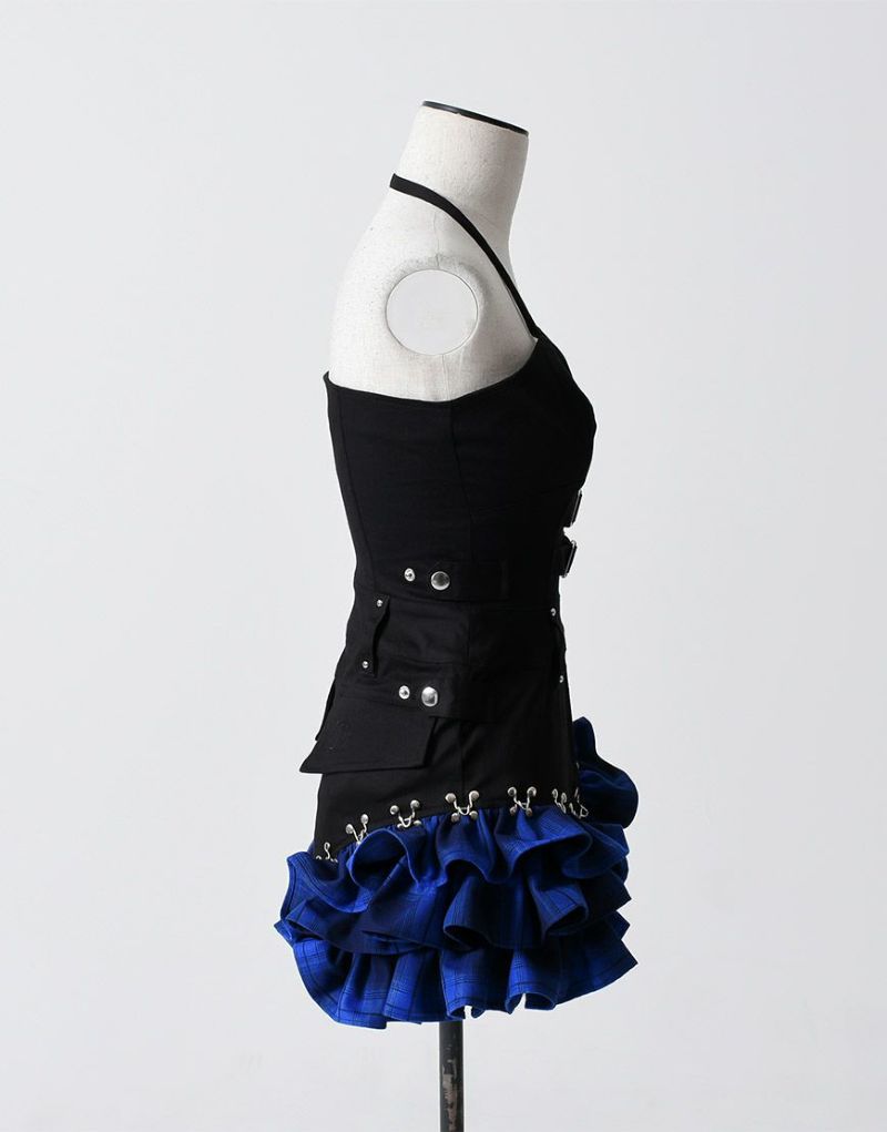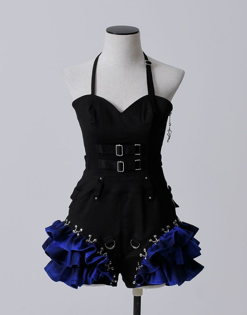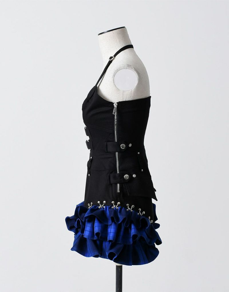 腰の周りのボタンでコルセット風に腰の細さを強調させ、骨盤の部分にはボリュームを加えてスタイル良く魅せられるお洋服です。