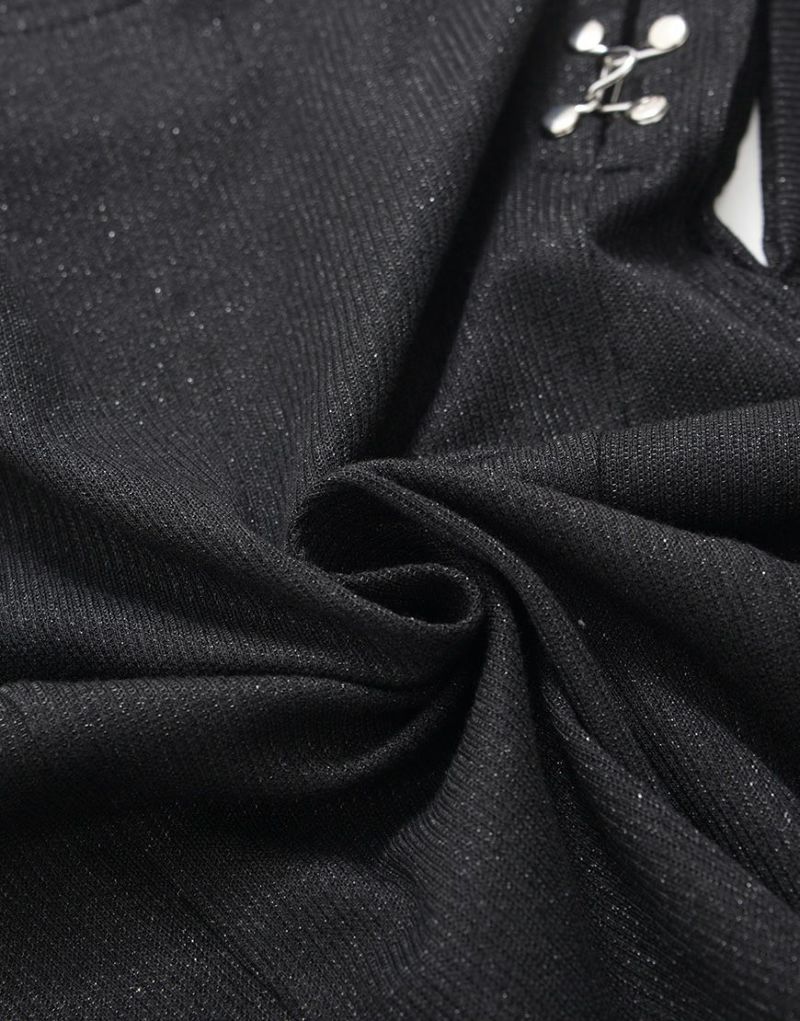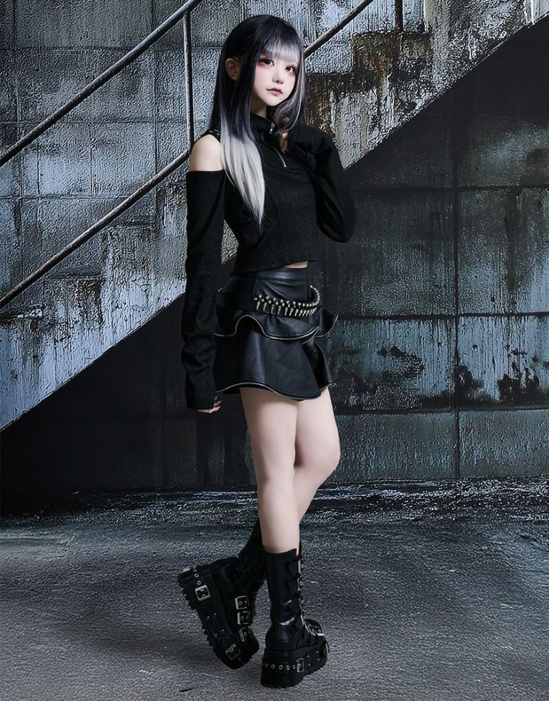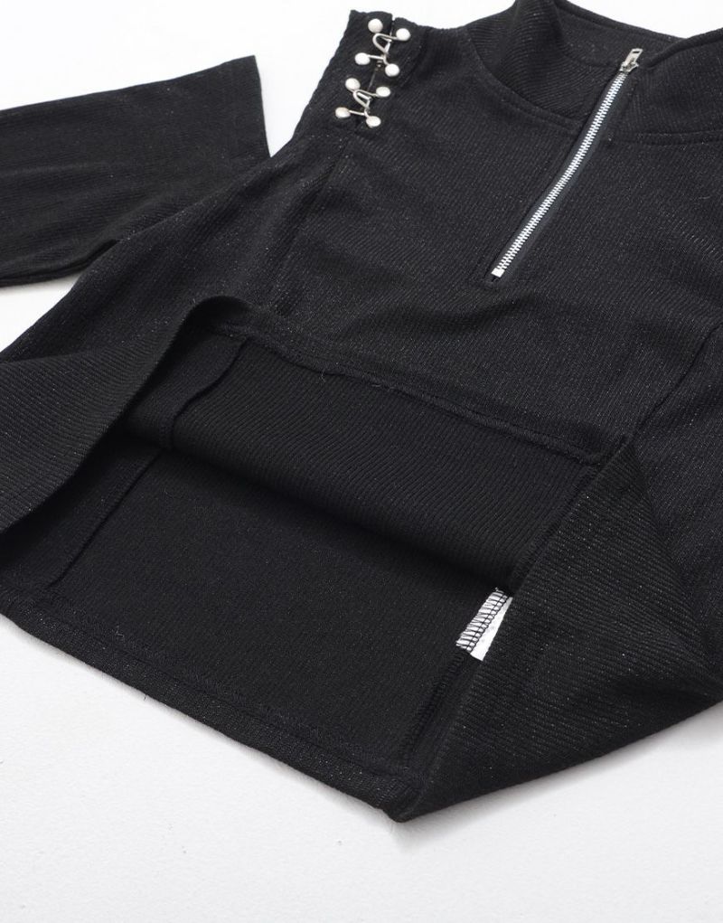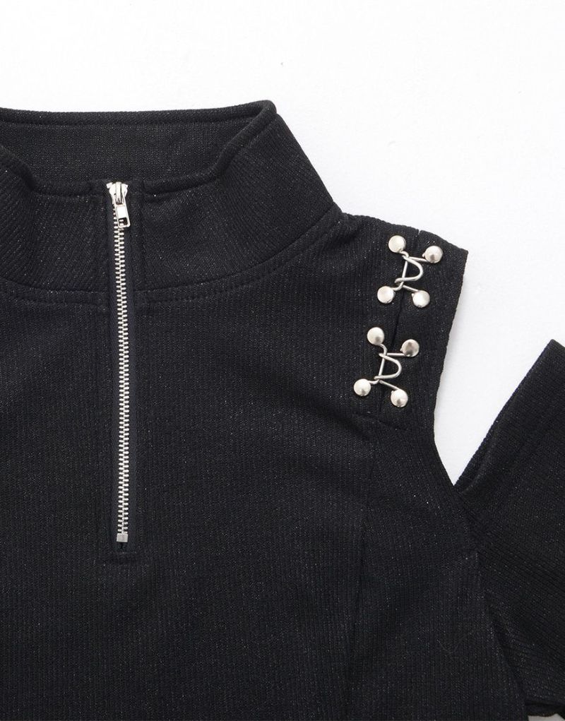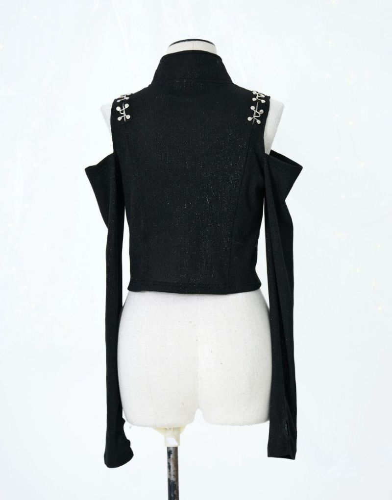 ililil【イルイルイル】より地雷ちゃんの万能★クロップド肩開きキラキラリブドハーフジップ長袖カットソーが登場です。 肩にホック付きのスリットが入ったクールなデザイントップス♪ ホックは鋲止め仕様で、さりげなくエッジの効いたアクセントに。 肩開きデザインが抜け感をプラスし、指ぬき付きで手元までおしゃれに◎ リブ生地は薄めで、ラメが入った上品な輝きが魅力 軽やかな着心地で、春先から初夏ごろまでロングシーズン活躍する一枚です♪ 同時発売の【IL25-C02】 【IL25-E05】 と合わせて着用することでセットアップ提案も楽しめます。