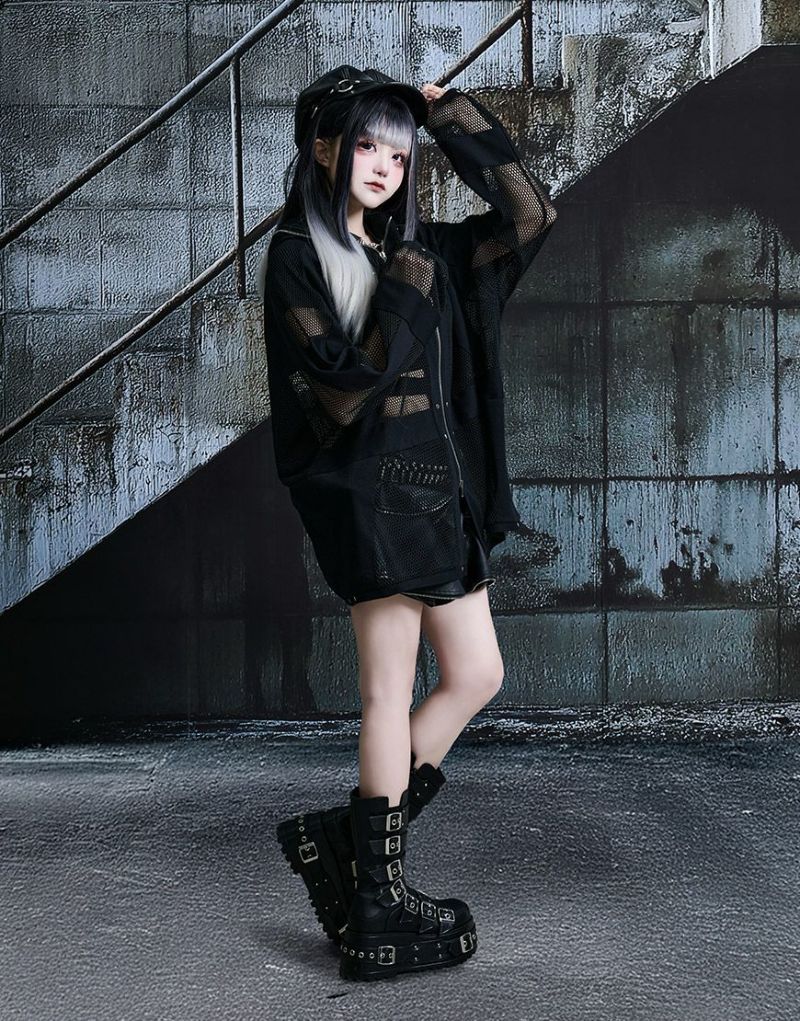 ililil【イルイルイル】よりChainmailリブ切り替えメッシュパーカーが登場です。