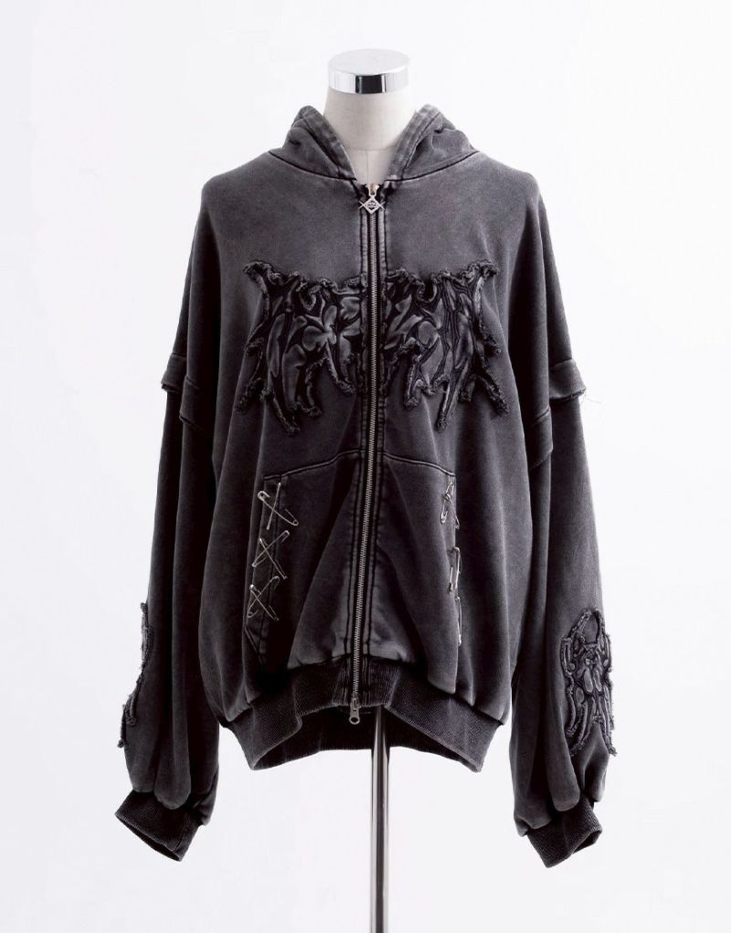 鋲・装飾・刺繍といったREFLEMらしいアイコニックな要素を詰め込んだ、圧倒的存在感のパーカー。