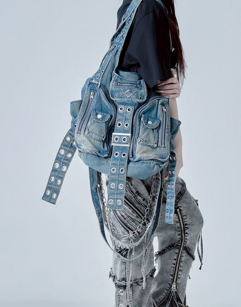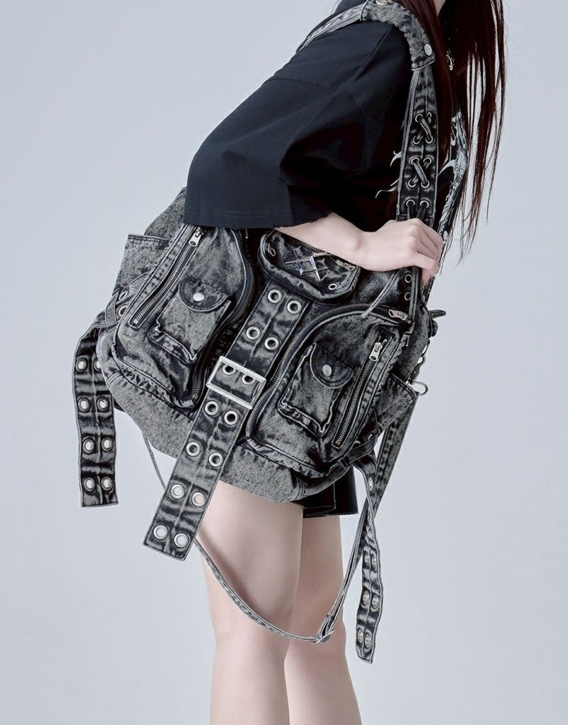 フロントはまるでジャケットをそのままバッグにしたようなユニークなデザインで、10個のポケットを大胆に配置し、機能性とファッション性を両立しました。