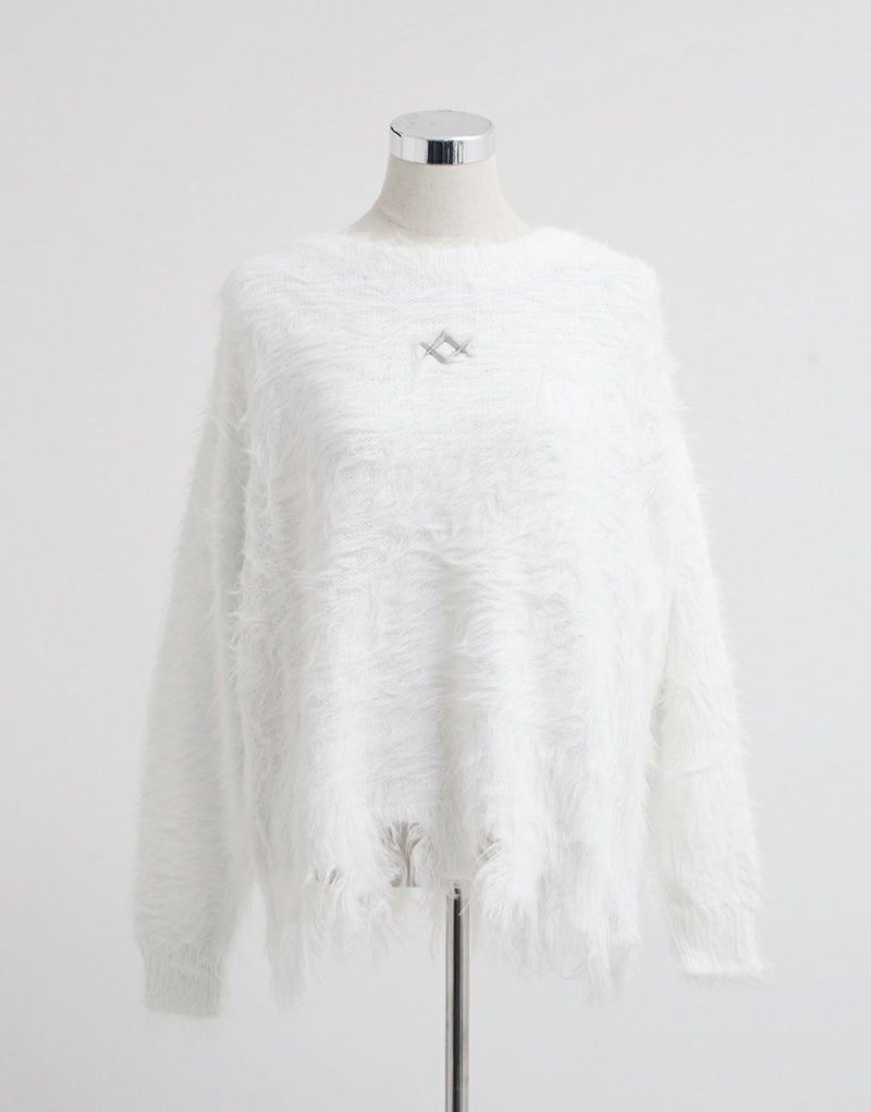 REFLEMらしいエッジィなムードを、フェザーヤーンの柔らかな表情で落とし込んだニットプルオーバー。