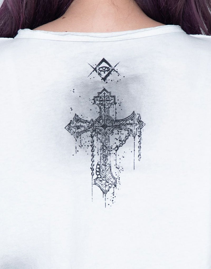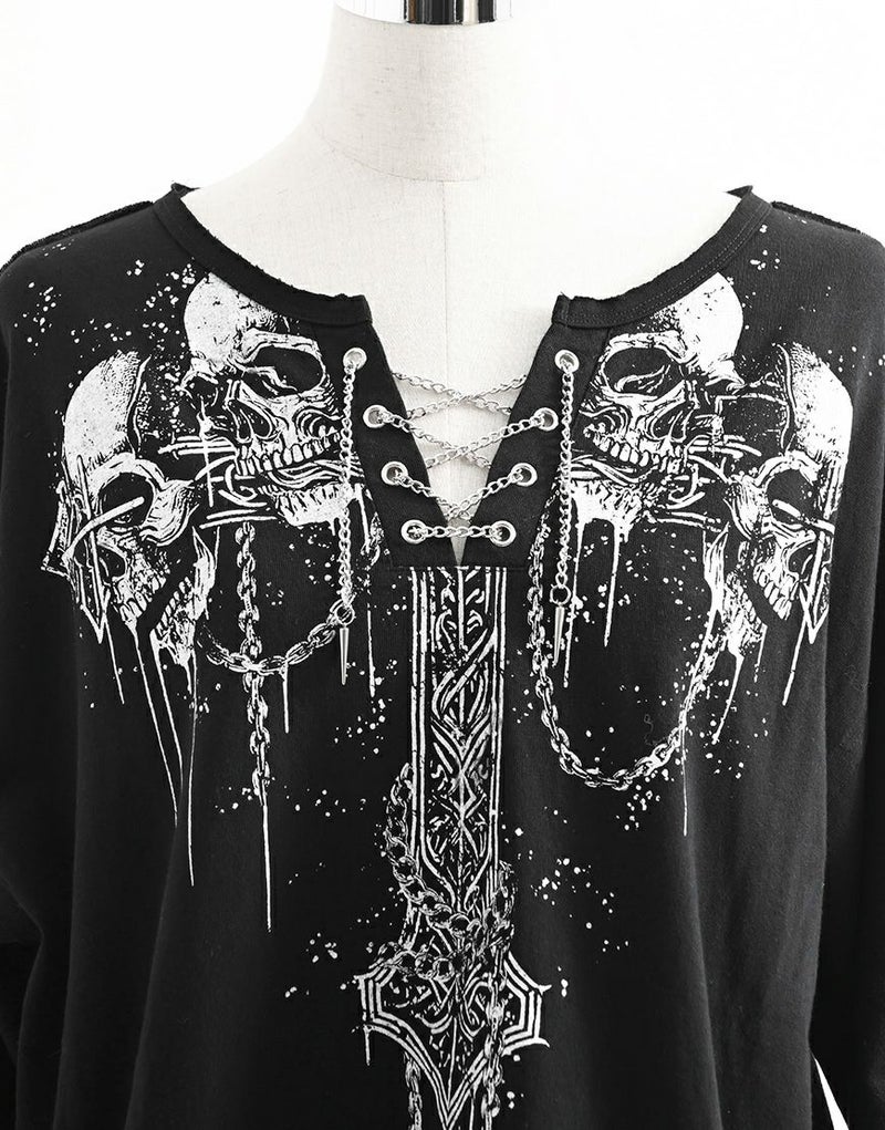 フロントには、スカルとクロスモチーフを組み合わせたグラフィックを大胆に配置。