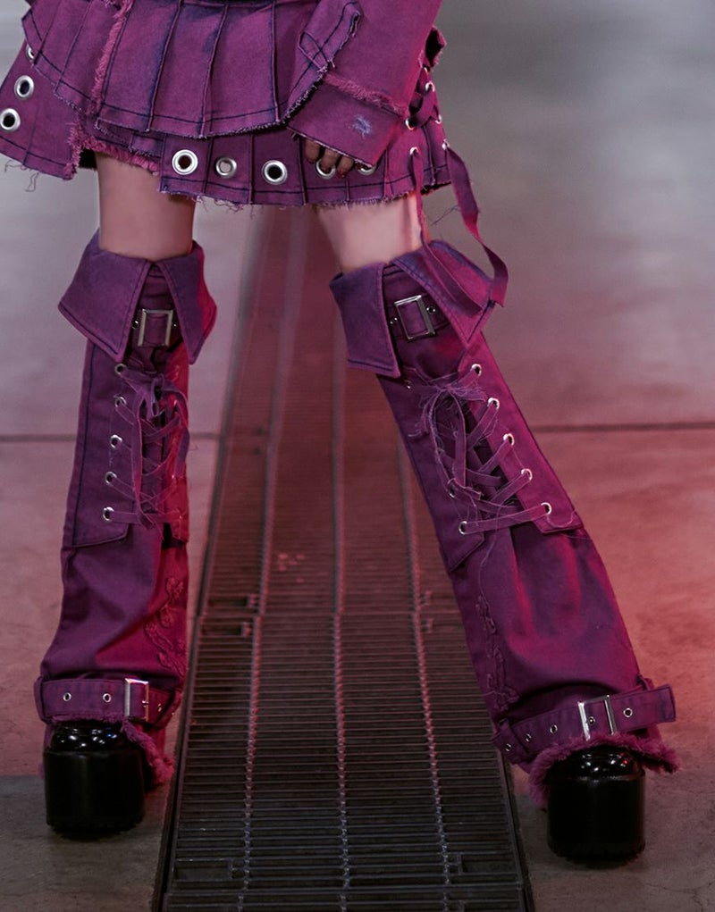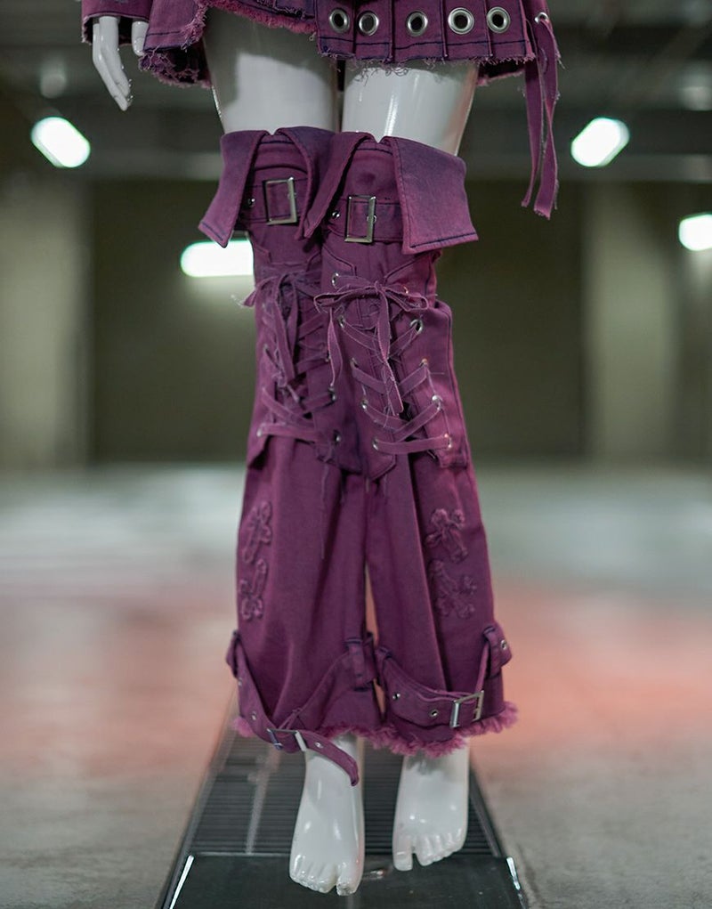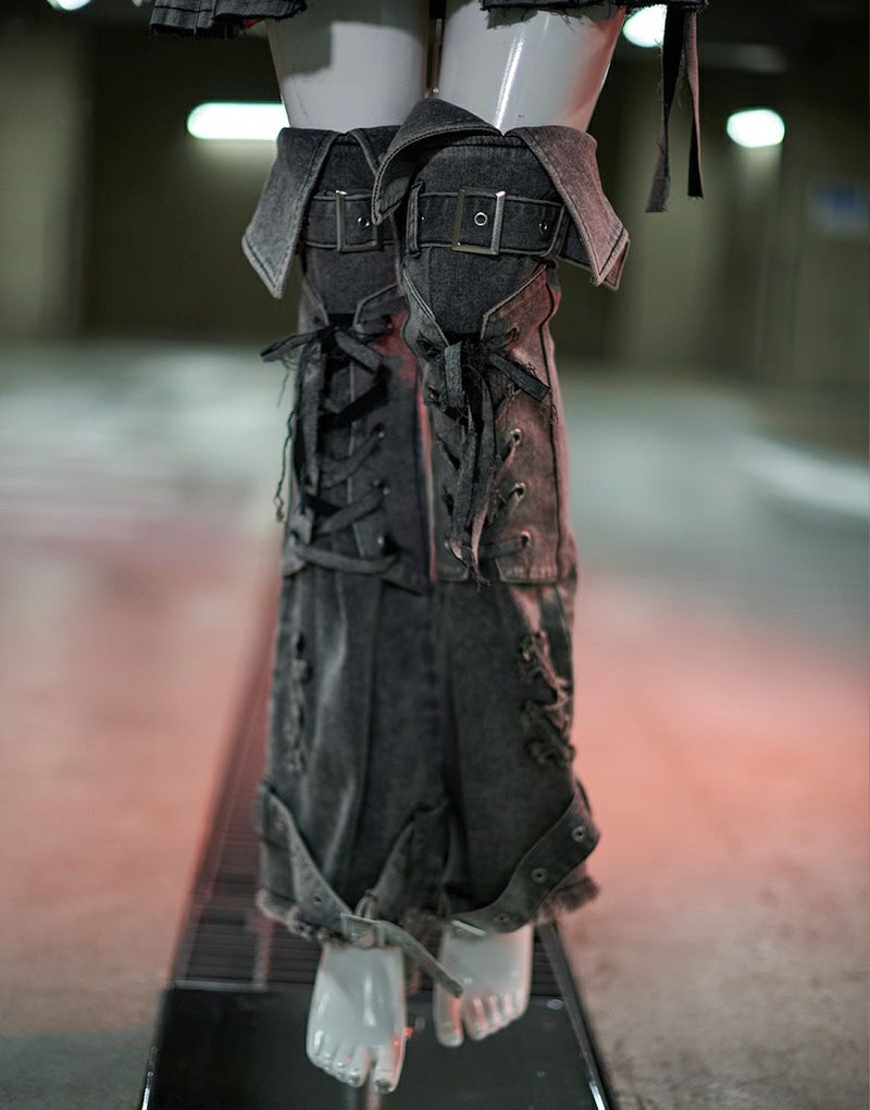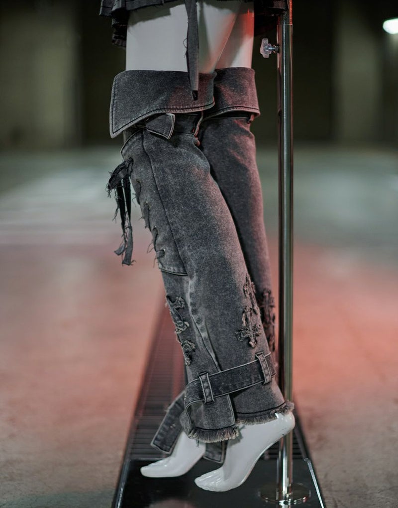 フロントの大胆なレースアップが目を引くニーハイ仕様のデニムレッグカバーの登場!!