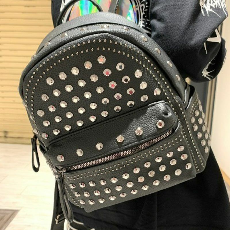 NOVESSELからスタッズバッグパックが登場。ボディ全体に施されたスタッズがインパクト抜群のリュック。 コンパクトなサイズ感が可愛らしさを演出。 ジップポケットがフロント部分にあることで、小物の収納が可能なのも嬉しいポイント! 素材はPUレザーなので雨で痛む心配もありません。 お出かけや通勤通学にぜひご活用ください! ※モデル画像は照明などの影響により実際の商品と異なる場合がございます。