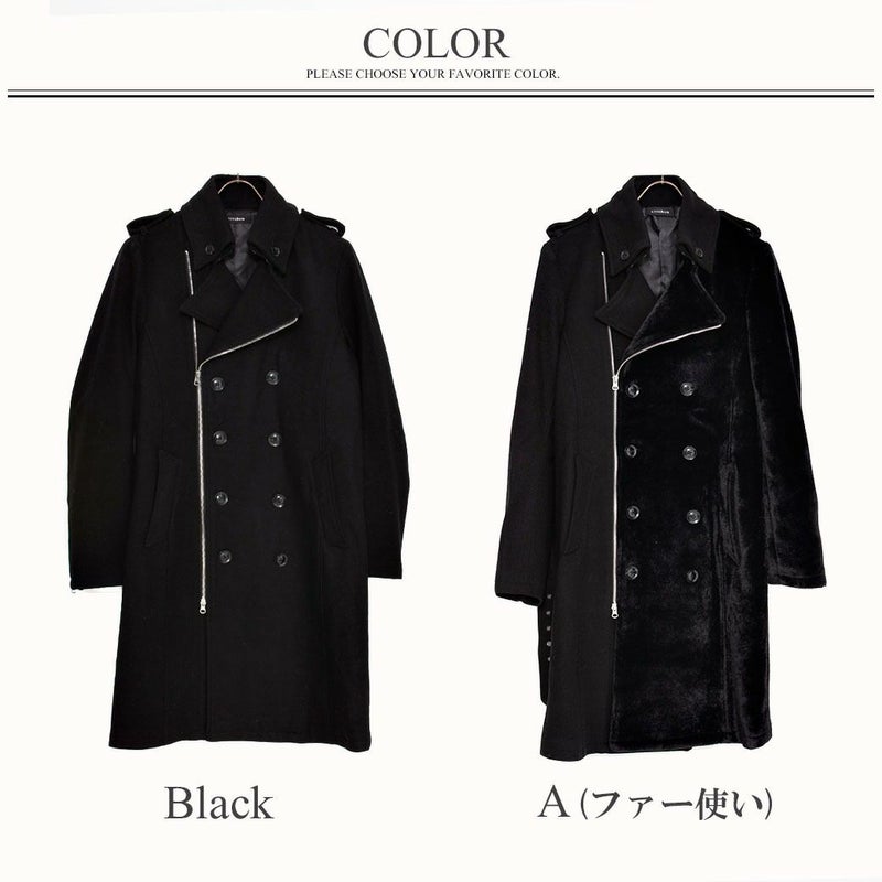 今回は定番ブラックと左半身・左袖を毛足のあるブラックファー生地にした2種類を展開。