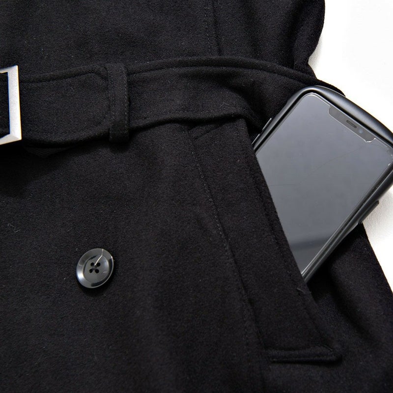 トレンチならではの腰のデザインベルトも付属され、閉めて着用しても