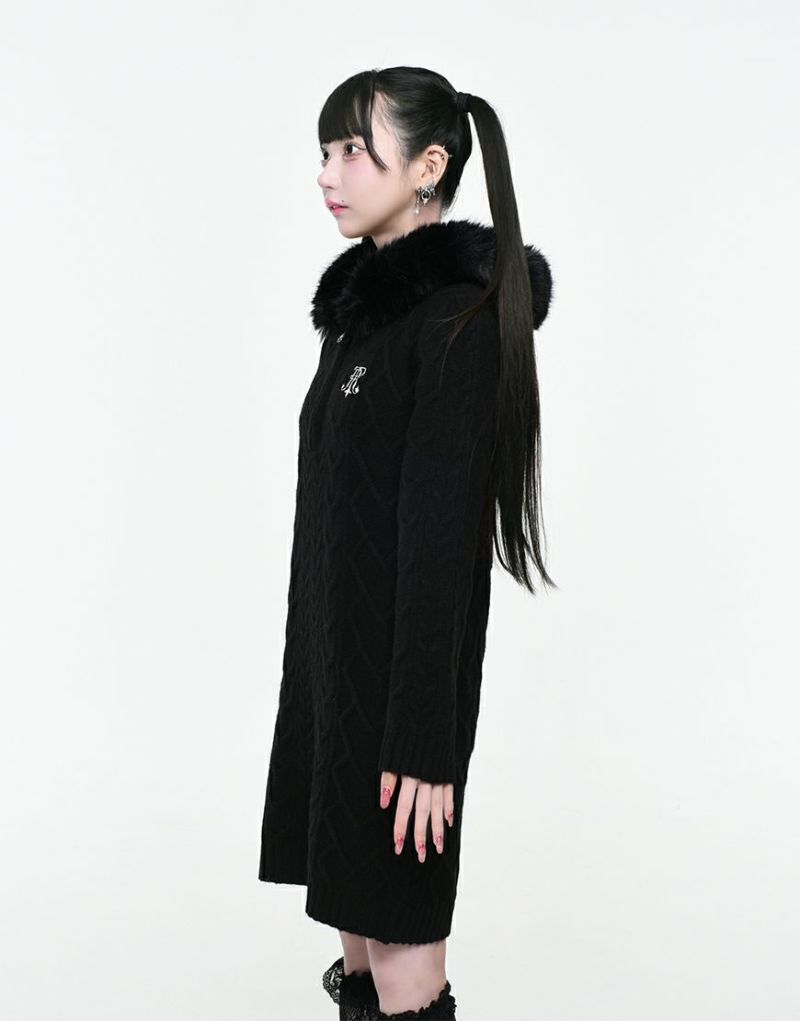 TRAVAS TOKYO"からクマ耳ファーフードケーブルニットワンピースが入荷。