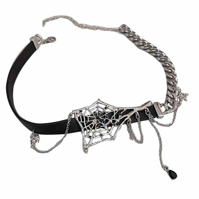 NOVESSELからスパイダーチョーカーが登場。 マットなフェイクレザー素材に、チェーンとスパイダーネットの装飾。 首元のオシャレには欠かせなくなってきたチョーカー。 キレイめやストリートスタイルのアクセントにもおすすめ◎ オフショルなどの首周りがスッキリと見えるコーデと特に相性抜群です。 コーデにインパクトを与えてくれる一品となっております。 ※モデル画像は照明などの影響により実際の商品と異なる場合がございます。