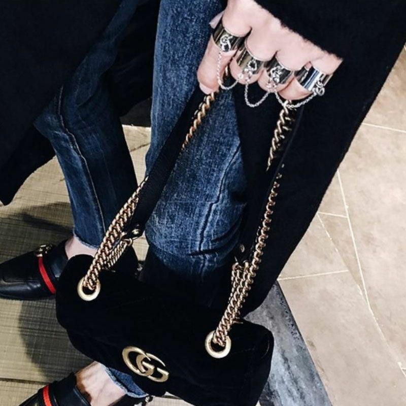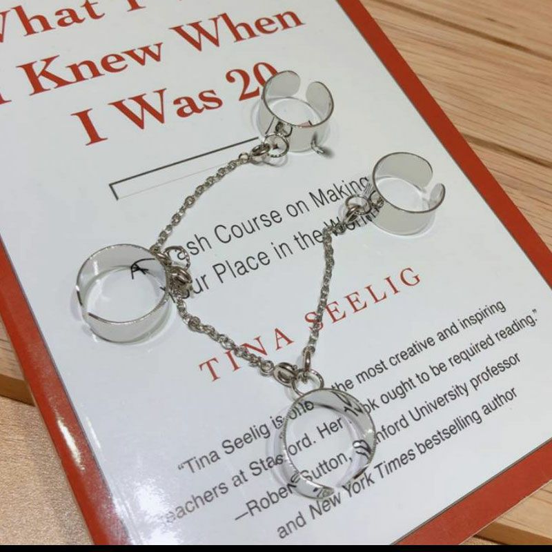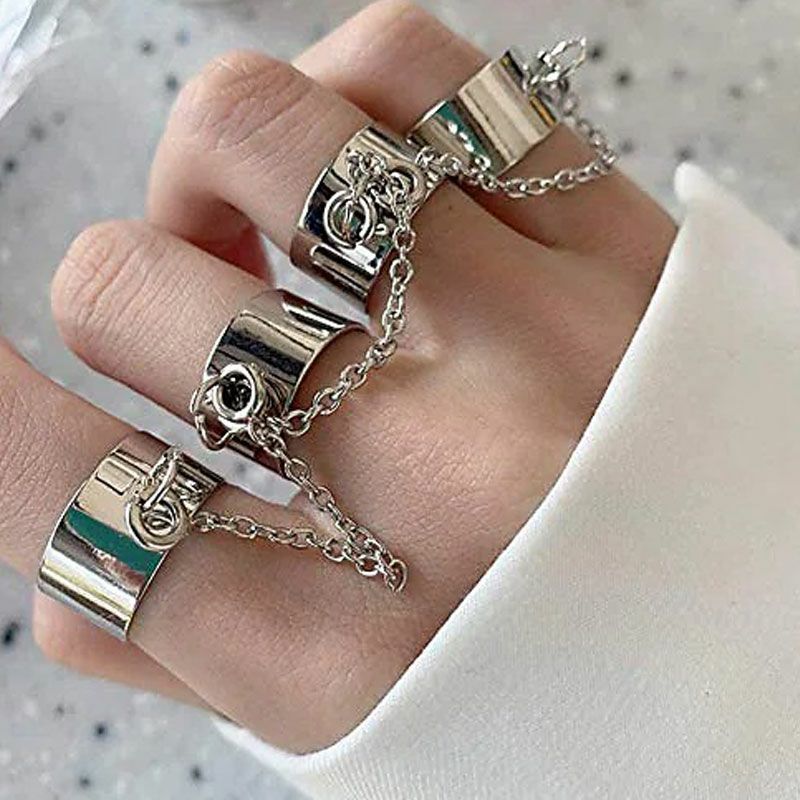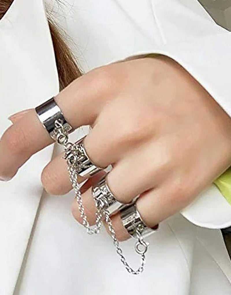並列に4本指で使用でき、1個1個をチェーンで繋げた病カワデザインのコンビネーションリング。