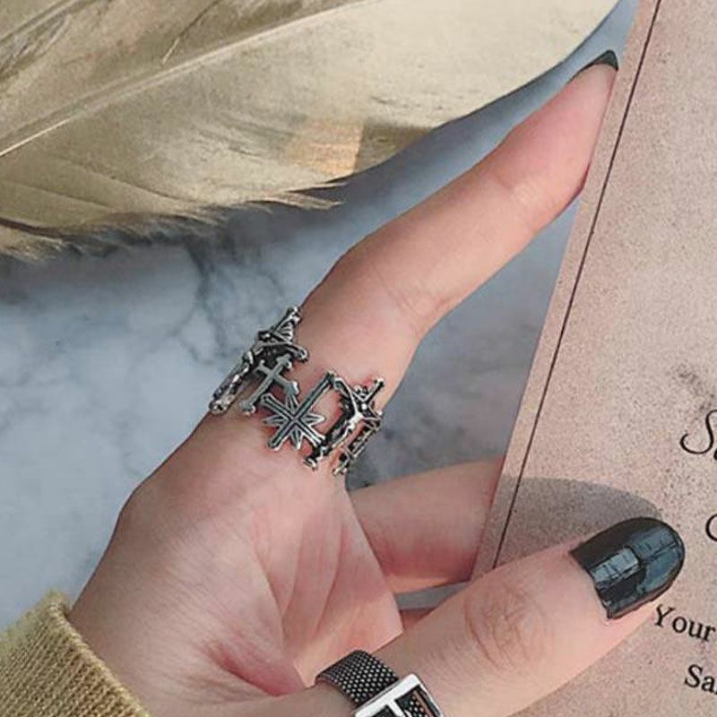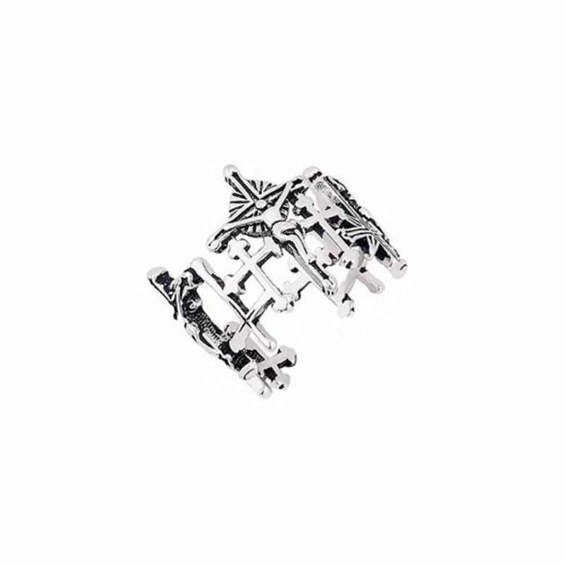 NOVESSELからクロスリングが登場しました。 いくつもの十字架をセメタリーテイストに配置したデザインリング。 ロック、ストリートなど幅広く合わせられるリングです。 またバングルの様に曲げて自分サイズに調整できるので、ユニセックスとしてもご着用いただけます! ※モデル画像は照明などの影響により実際の商品と異なる場合がございます。