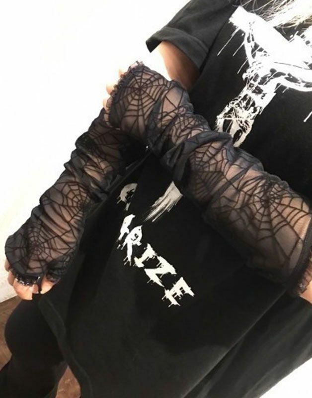 NOVESSEL【ノベセル】からシースルーアームウォーマー(両手2個セット)が登場しました。 透け感のある素材を使用。スパイダー柄のような退廃的なデザインを施した病カワアイテム。 この機会に是非お試しください! ※モデル画像は照明などの影響により実際の商品と異なる場合がございます。