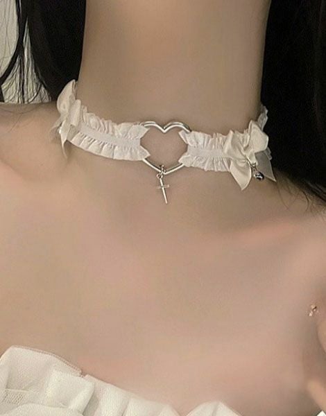 NOVESSELからハートクロスチョーカーが登場しました。 ハートにクロスデザインと病みカワMIXたっぷりのチョーカーが登場です。 パンク、ロック系のスタイリングは勿論、地雷系やストリートスタイルのアクセントにもおすすめ◎。 ※モデル画像は照明などの影響により実際の商品と異なる場合がございます。