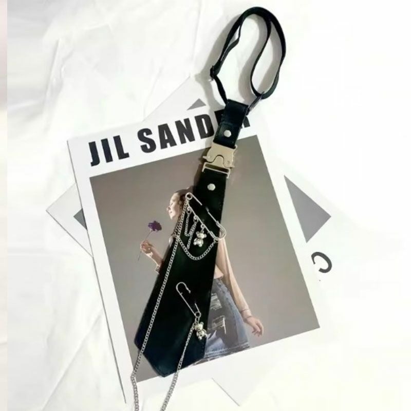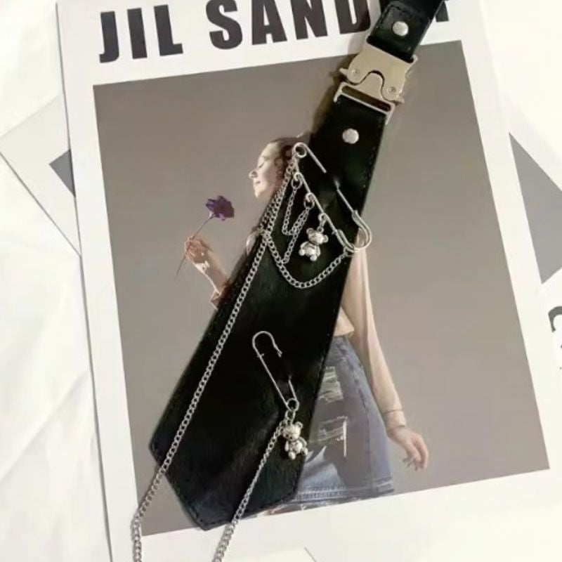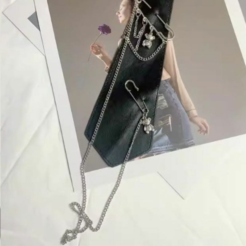 NOVESSEL【ノベセル】から安全ピン付きネクタイが登場しました。 安全ピン+チェーンをあしらったデザインネクタイ。 ダークストリート、パンク系など幅広いスタイリングにお使いいただけます。 ユニセックスとしても着用可能ですので、この機会に是非お試しください。 ※モデル画像は照明などの影響により実際の商品と異なる場合がございます。
