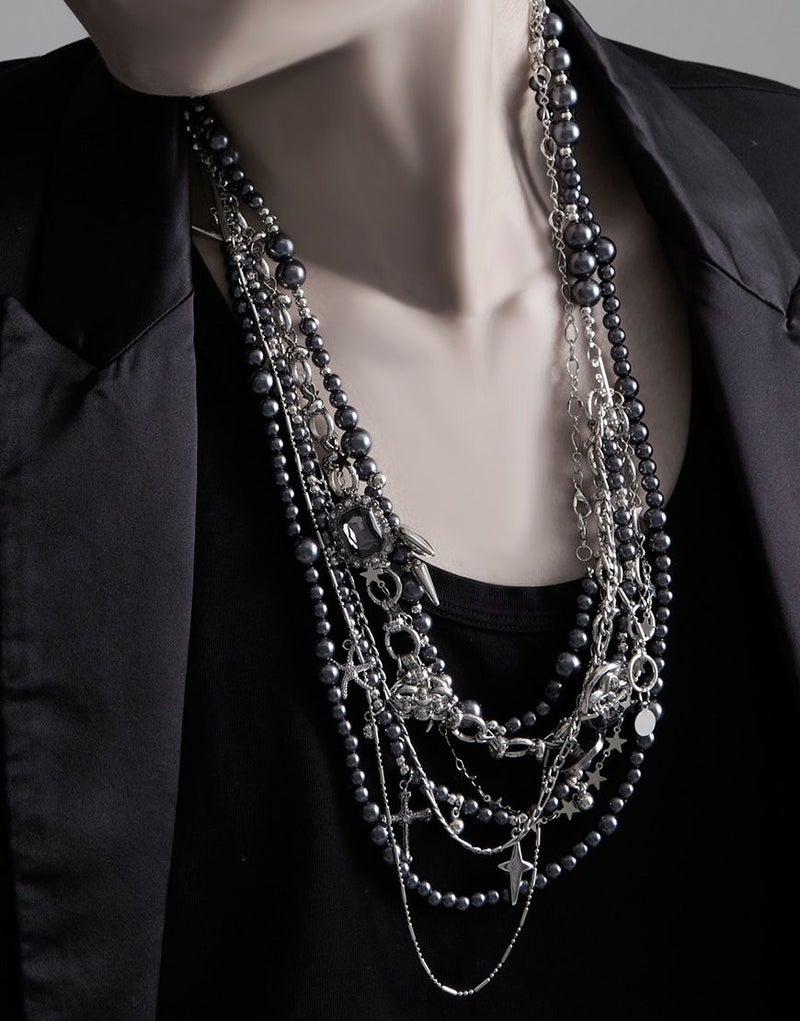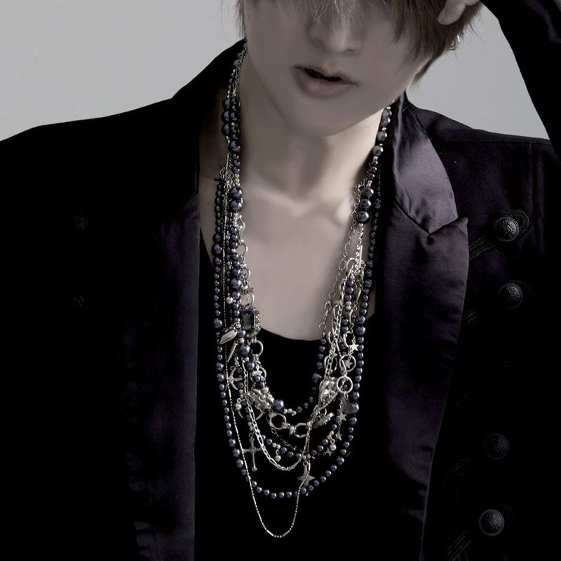NOVESSEL【ノベセル】多連マルチデザインネックレスが登場。2つのネックレスがセットになっているアイテム。 重量感があり、細かなモチーフも魅力です。 ボールチェーン、クロス、三日月、ブラックダイヤモンドにハート、スタッズ… 1つで3WAYに楽しめる、バリエーションに富んだ推しアイテムです。 ※モデル画像は照明などの影響により実際の商品と異なる場合がございます。 ユニセックスとしても着用可能ですので、是非お試しください!