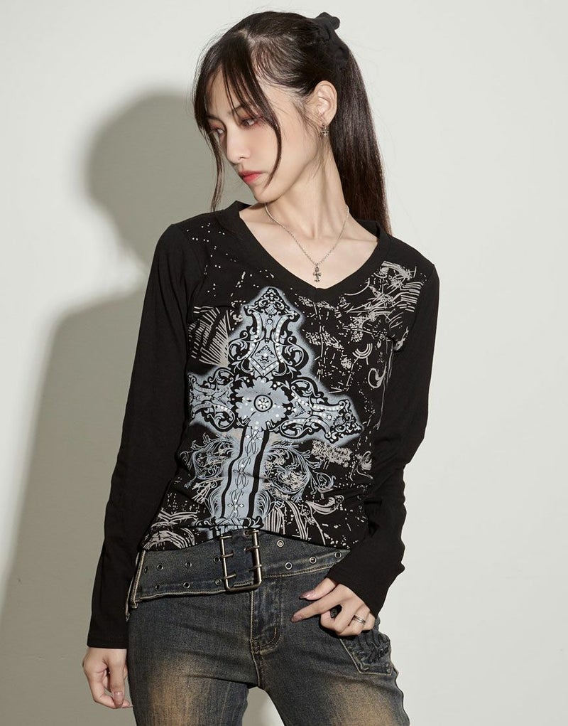 NOVESSELからクロスプリントVネックロンTが登場しました。 クロスプリントを施したVネックのレディースロンT。 インパクトあるクロス装飾プリントは1枚でもインナー使いでも抜群の存在感。 ヘビロテ間違いなしの長袖カットソーとなっています。