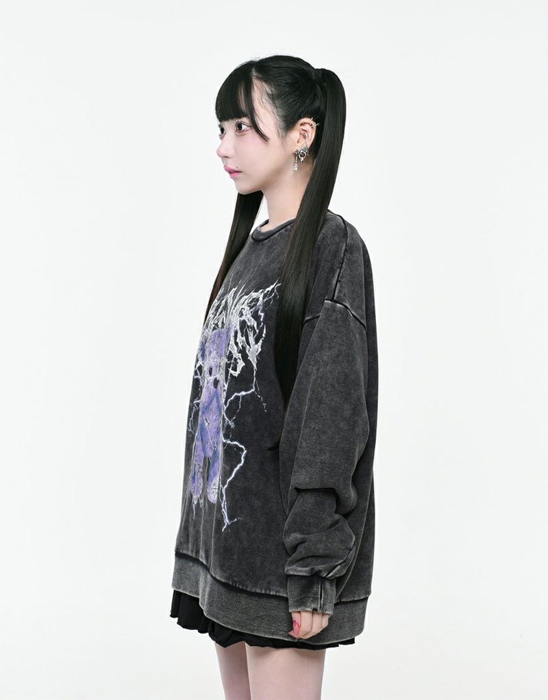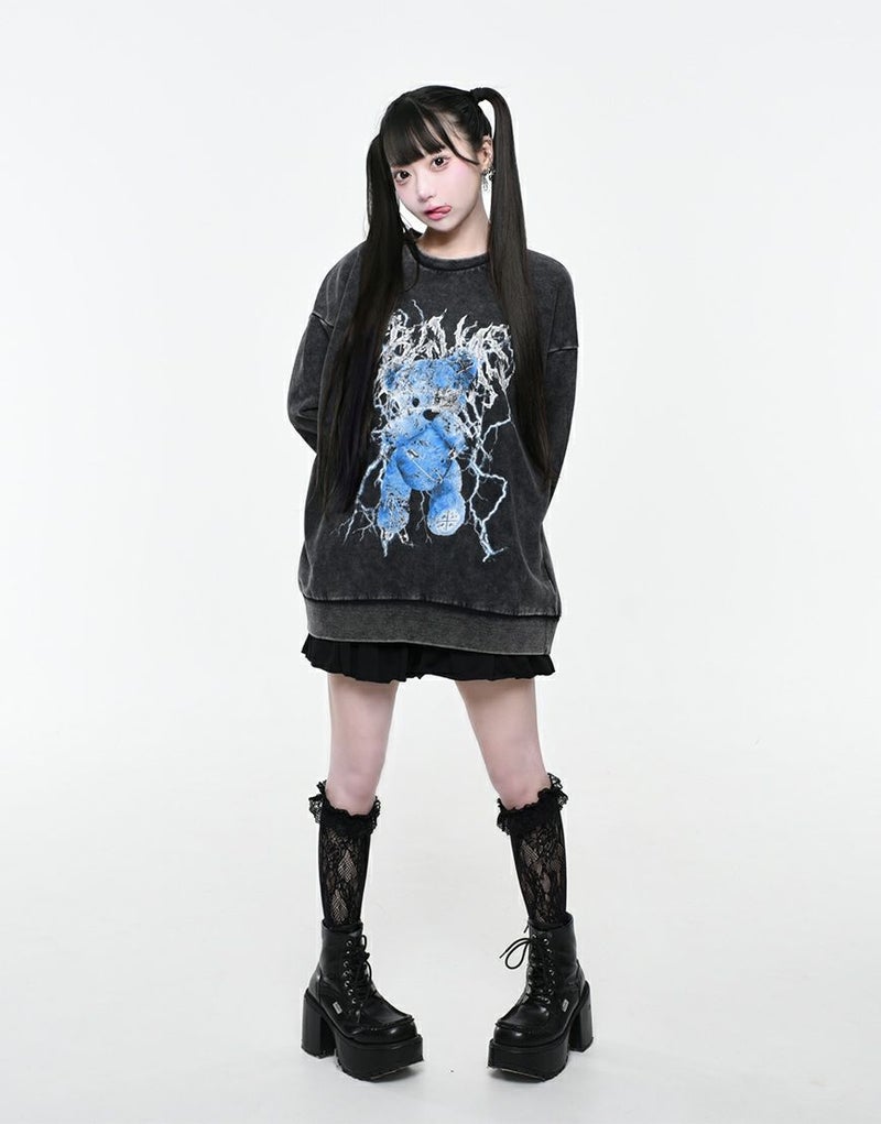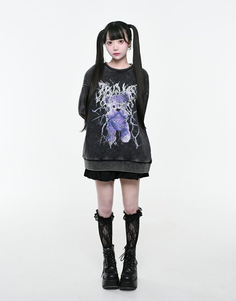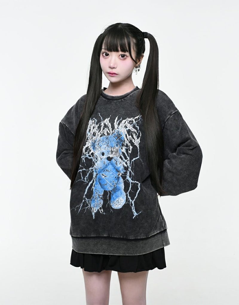 フロントにはグランジ感溢れるロゴとくまがプリントされたスウェットトレーナーです。