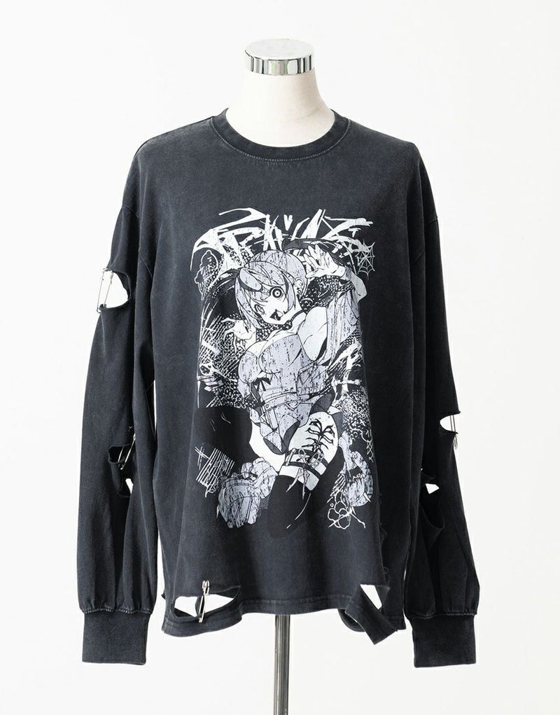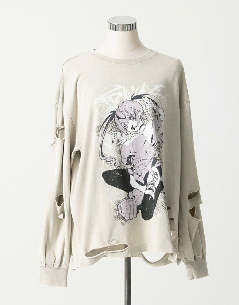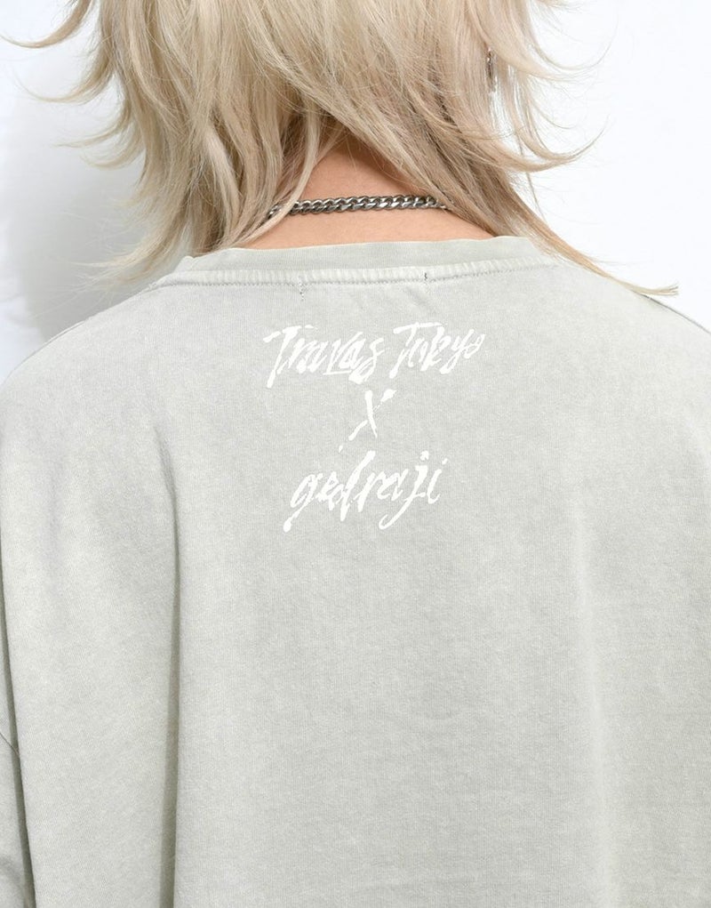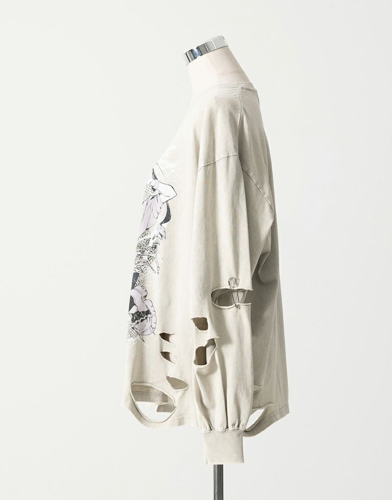 フロントには大胆なアートワークプリントを配置し、スタイリングの主役になる一枚に仕上げました。