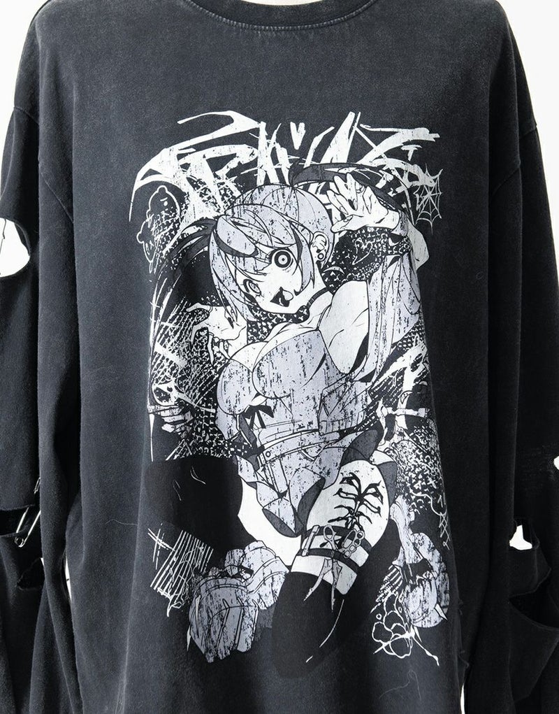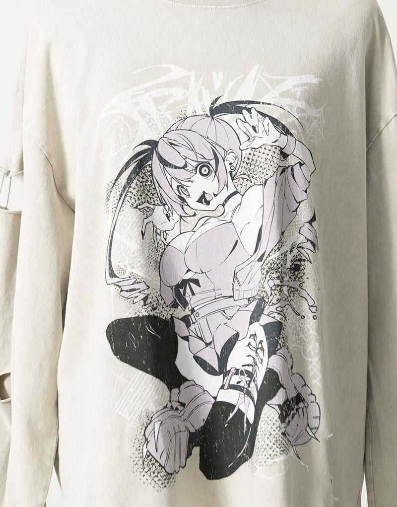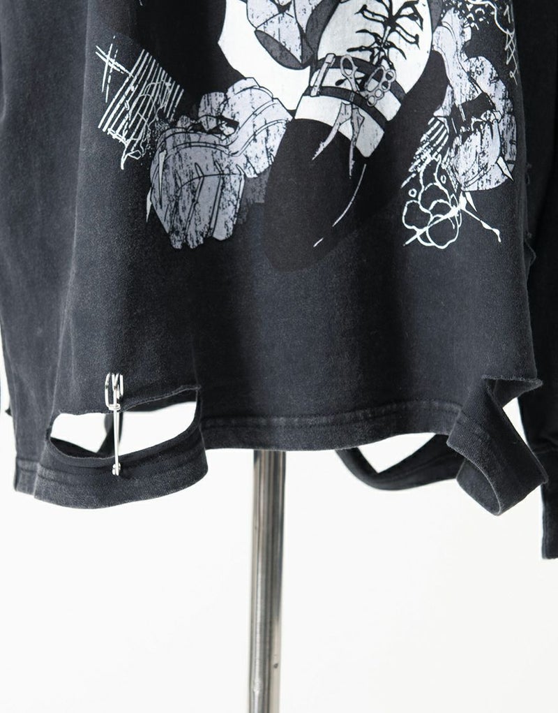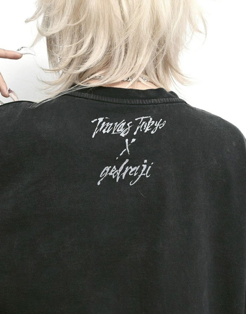 フロントには大胆なアートワークプリントを配置し、スタイリングの主役になる一枚に仕上げました。