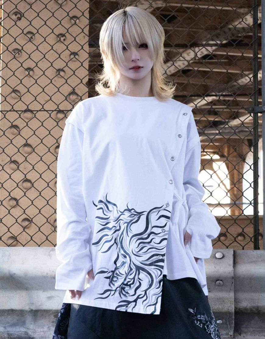 他の画像を見る AdaNous【アダナス】火ノ神朱雀アシンメトリーカットソー/全2色 ゆうパケット対応 ¥ 10,450 税込 販売期間 2026/01/24 12:00 〜 カートに入れる お気に入りに登録する